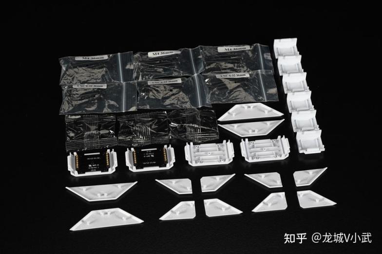 先來看附件,這是我見過附件最多的風扇了,光螺絲就提供了三種,36mm牙長的M3\M4各三包以及普通固定的短螺絲3包,然後是6個角蓋、4個鏈接橋、各類螺絲孔蓋12個。