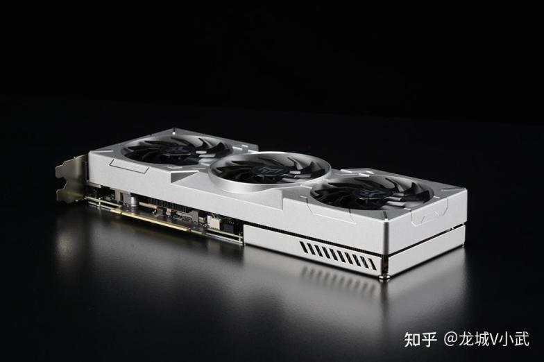 顯卡整體尺寸爲:328*139*48mm(含擋板),雙槽設計。顯卡採用一體壓鑄的鋁合金外殼,整張顯卡拿在手裏透着沉甸甸冰涼的金屬質感。