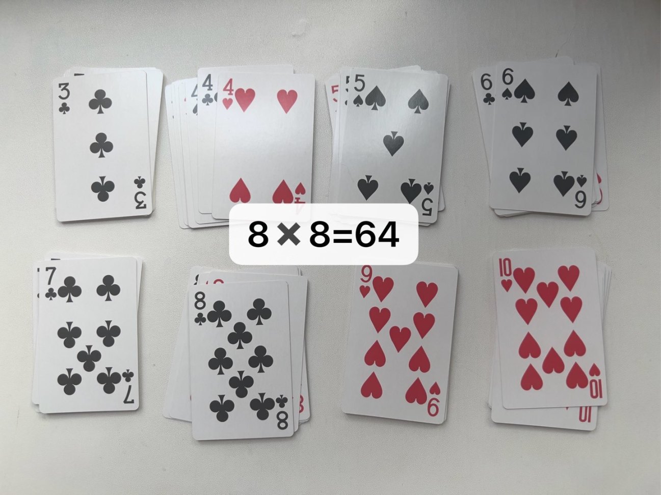 “如果像咱这种情况,无法整除发牌,则余牌弃掉,即每人10张牌。发给你们这10张牌是你们的手牌,在手中时不要展示给别人。这款游戏不需要用到花色,只需要用到数字,数字共八种,各有八张,记住是3到10,没有A和2。”