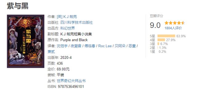 毫不犹豫地说,K.J.帕克的小说集《紫与黑》,是笔者今年读过的最惊艳的作品。
