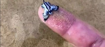 虽然这些海蛞蝓生活在开阔的海洋里,但有时会不小心被冲上岸,人们偶尔能在海滩上找到它们。
