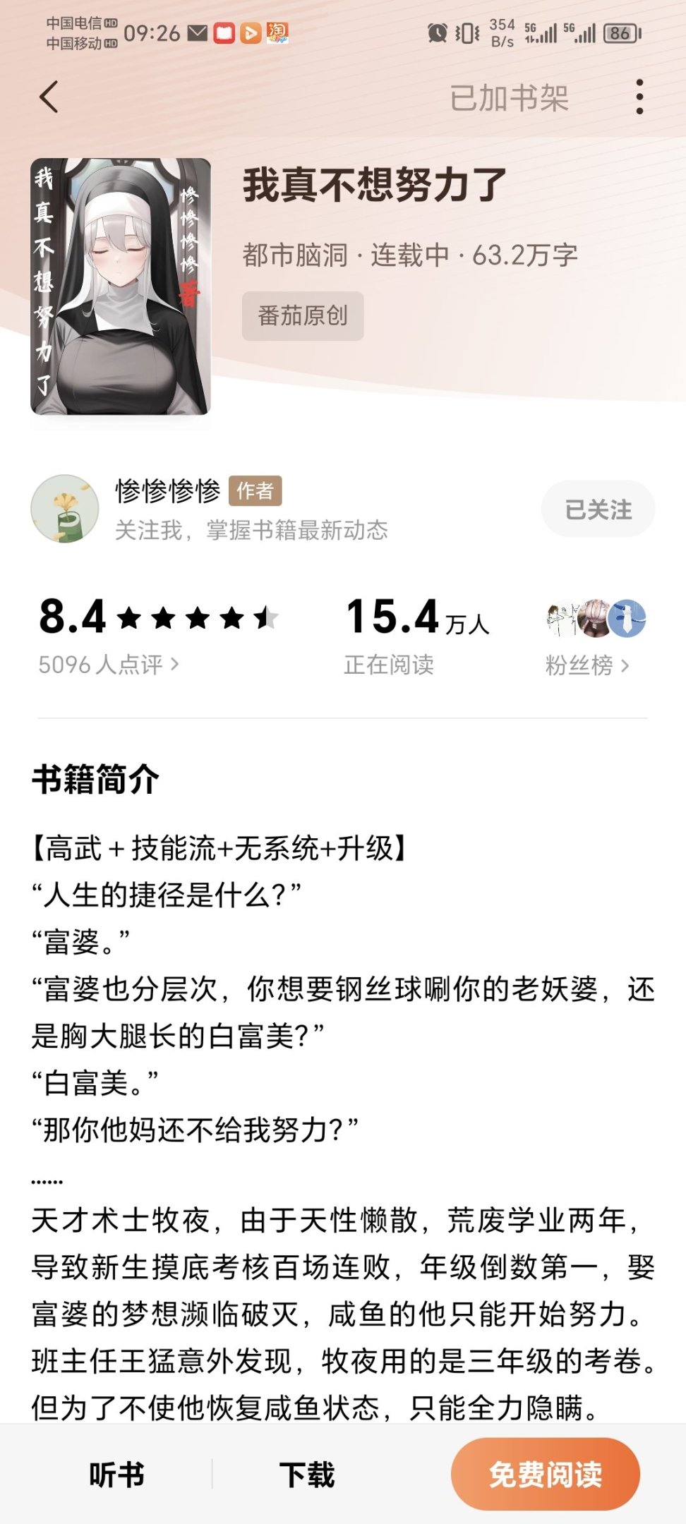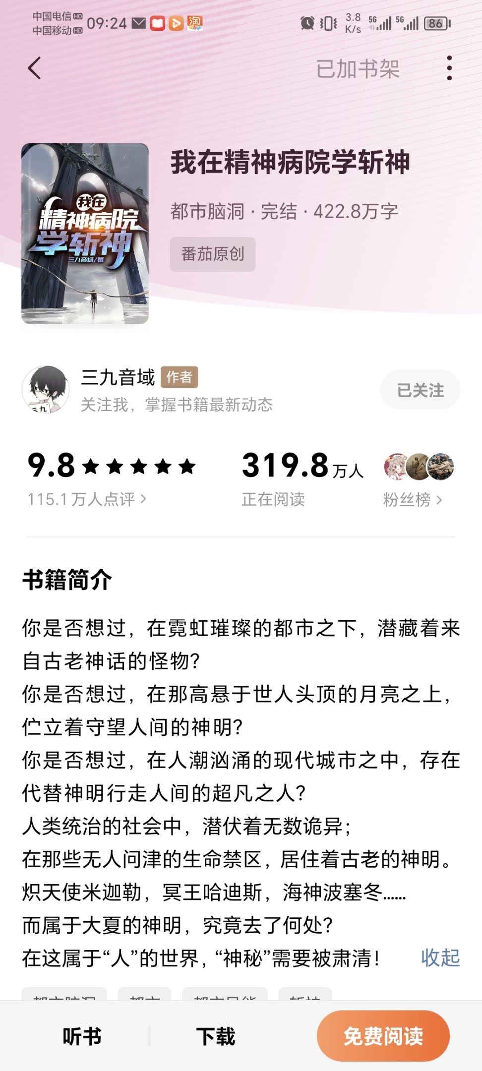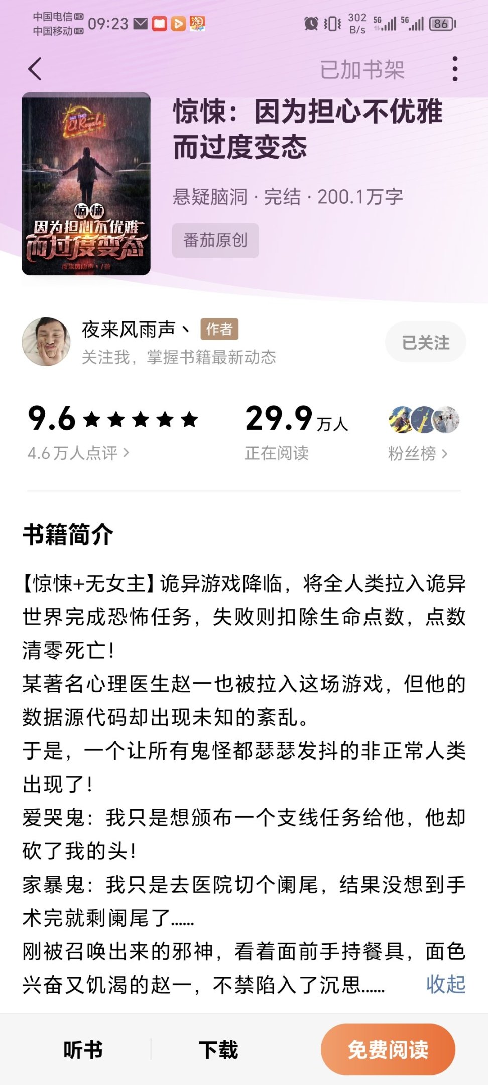 以下推书全是由个人喜好所推,不作为评定的绝对标准。有些书可能不和你的胃口,望见谅。接下来我将会把番茄里面的书籍详情截图出来,简介我就不发了。评分的话都在截图简介里面,多少人打分都看得见。
