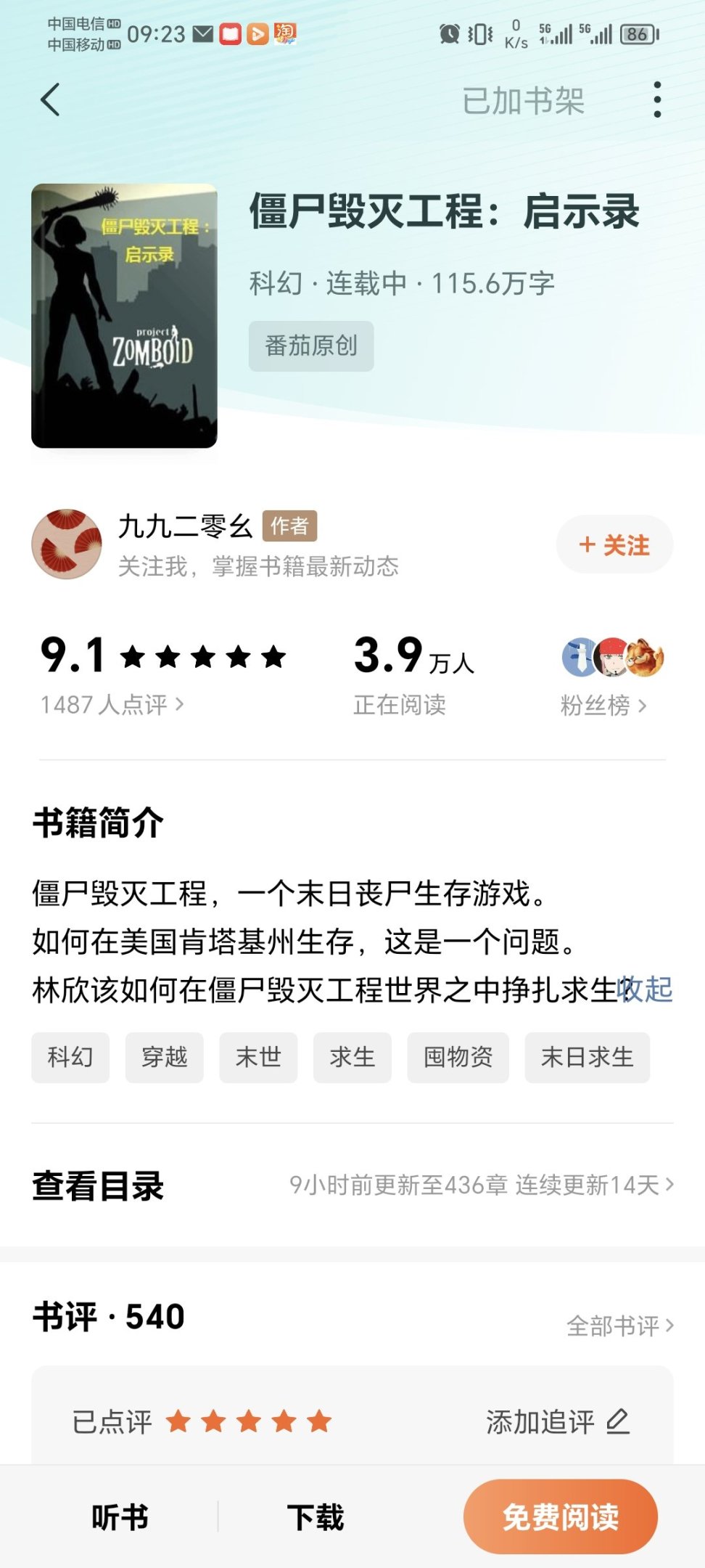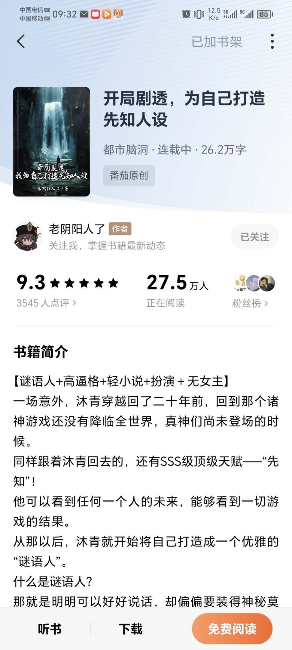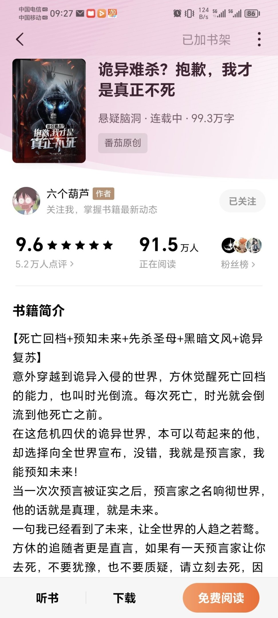 以下推书全是由个人喜好所推,不作为评定的绝对标准。有些书可能不和你的胃口,望见谅。接下来我将会把番茄里面的书籍详情截图出来,简介我就不发了。评分的话都在截图简介里面,多少人打分都看得见。
