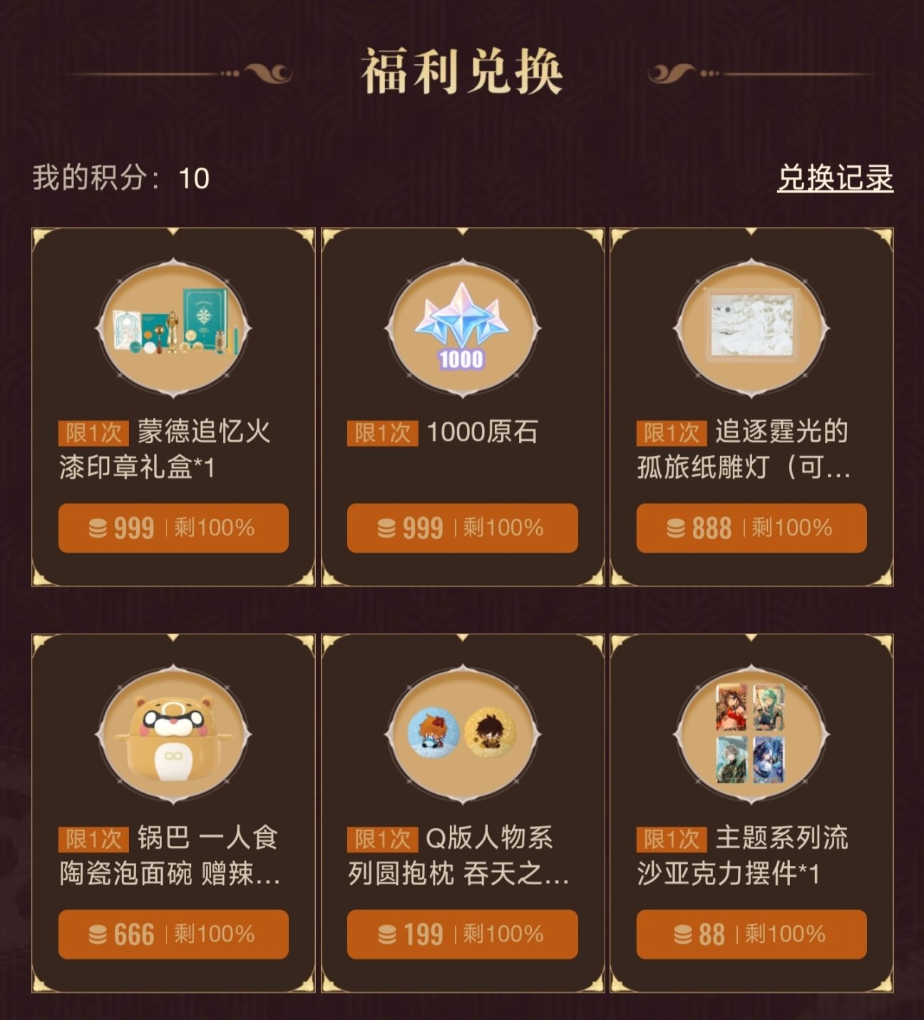 9.10[85+45*6+35*19=1030]可兑换1000原石/礼盒
