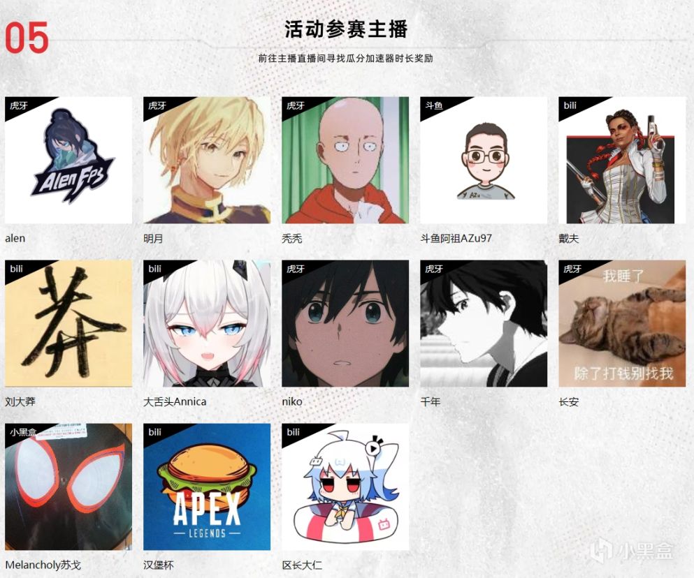本次活动还邀请到了不少Apex分区的优质主播,大家快前往喜欢的主播直播间加入粉丝团寻找瓜分加速器福利吧~