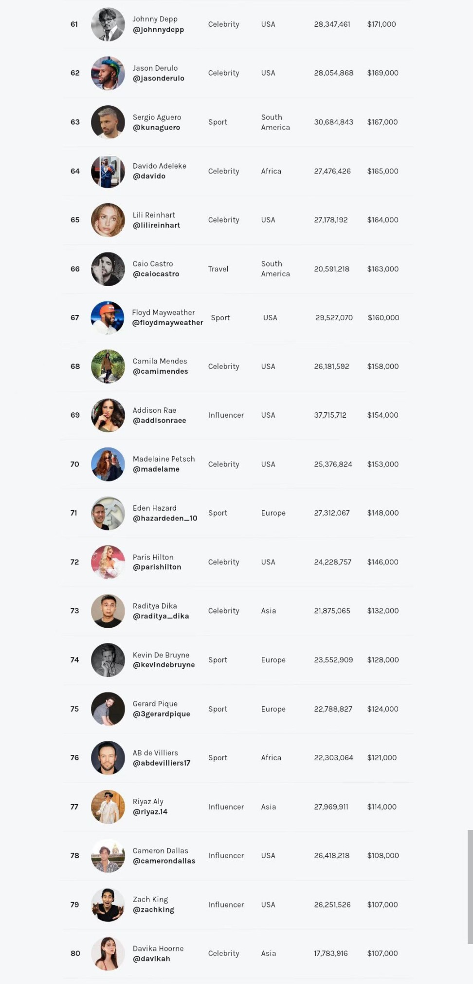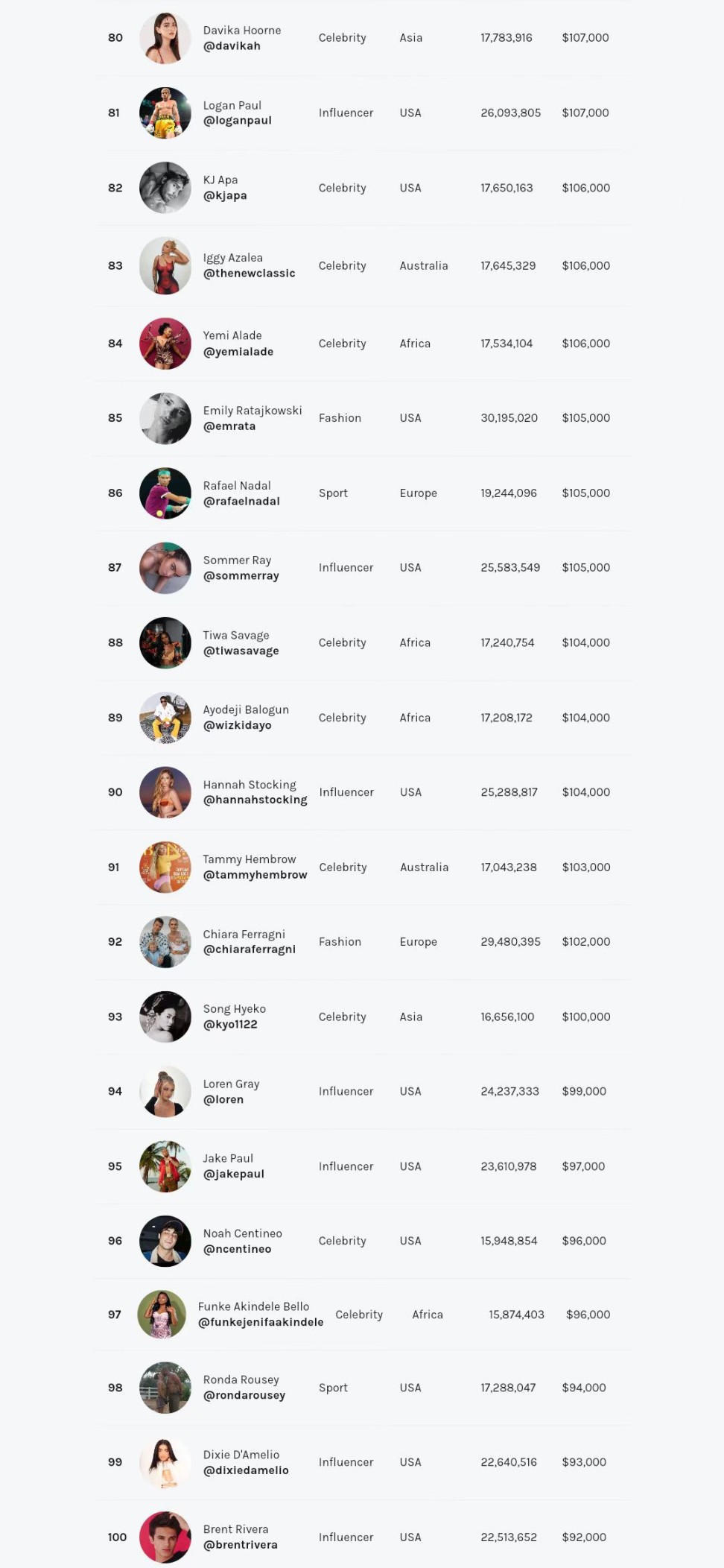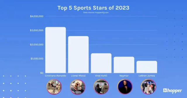 8月17日Hopper HQ發佈了2023年頂級Instagram收入名單,Hopper HQ從2017年開始進行這項排名,以統計Ins上點贊流量大戶的財富值。