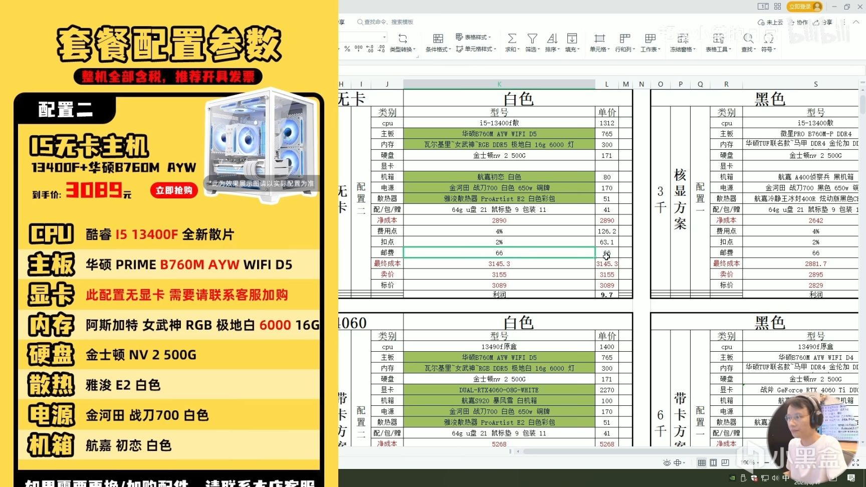 網友提問:4090整機爲什麼固態只選500G,小桀再放出4090性價比圖,自己沒有賺多少,因爲成本太高,只能選擇這些配置,小桀表示自己,“拿貨的價格確實會高一點,畢竟都是含稅的呀!”下圖五千價位的整機,小桀一臺只賺10塊左右。