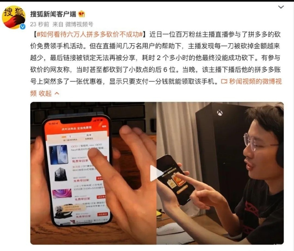 前言:一般情况下,游戏主播因为其封闭性很难出圈。但是总有一些特例,例如之前的全体起立、YYDS等。也有一些好的事迹出圈,例如给全小区提供免费无线网络被电视台新闻采访。但是真正出圈的应该是拼多多四千多人砍价未成功的事迹,因为拼多多这个热点太大了,而且砍一刀的无底洞也十分尖锐。之后更是因为存档被删除再次出圈,而最近的一次登上热搜也是因为自己的装机店引起了重大的负面争议。(除了超级小桀翻车以外,油管的LTT也翻车了。真的是没想到啊!)