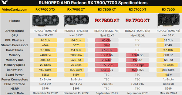 此前就有说法称,AMD会在Gamescom大会上发布RX 7800系列、RX 7700系列,不过上市要到9月份。