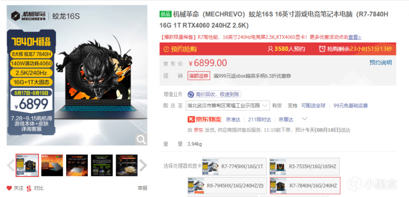 机械革命蛟龙16S(RTX4060 R7 7840)