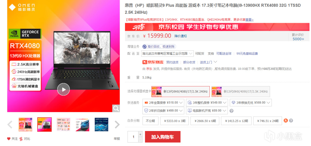 这个机器的性价比很高,在一线品牌里面4080能做到这个价格属于是比较实惠的了。RTX4080今年的牙膏大家也看到了挤出来很多,性能暴涨,如果预算在1.5W,但是属于超级务实派,我觉得上RTX4080是可以的。暗影精灵9Plus利用老模具的优势,愣是把RTX4080卡在了1.5W。