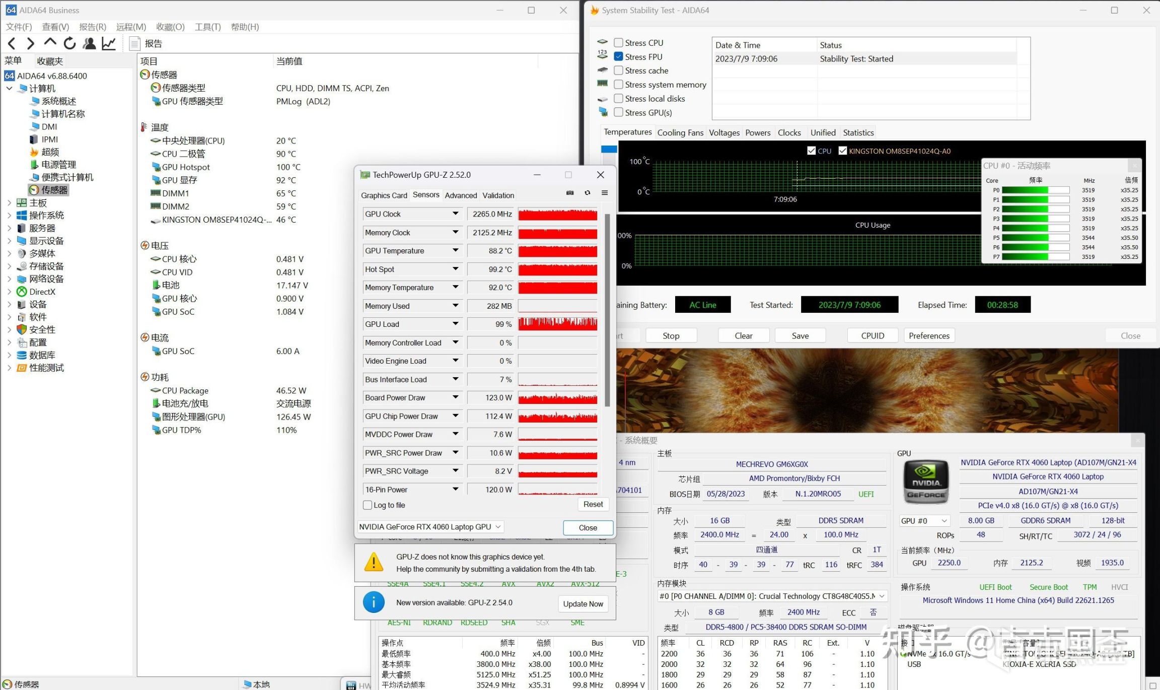 而且,RTX4060调教更为激进,偶尔能到140W,基本都是在120W以上。