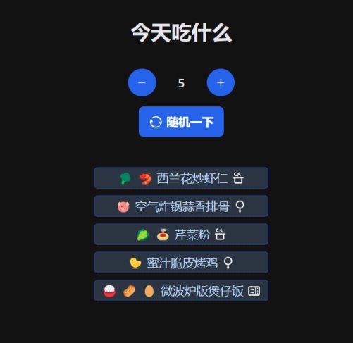 如果你连中午饭和晚饭吃什么都烦恼的话,网站还提供了随机器,随机安排上你的下一顿菜单,还会附上视频链接,彻底解决“中午/晚上吃啥”的千古难题!