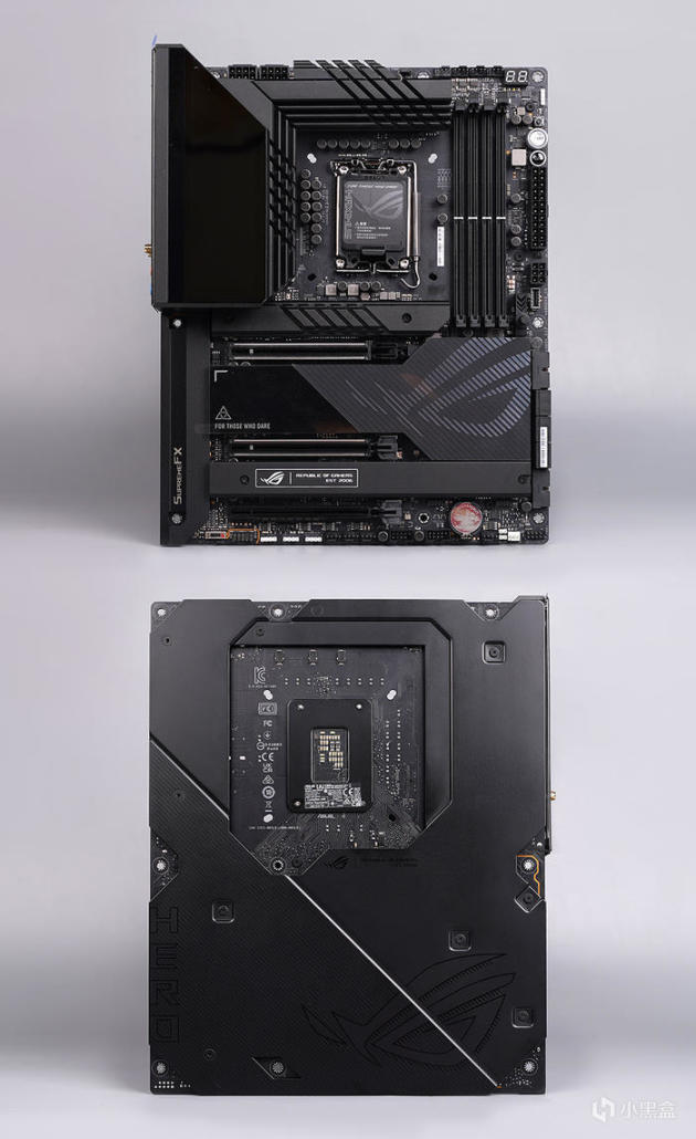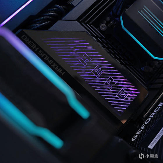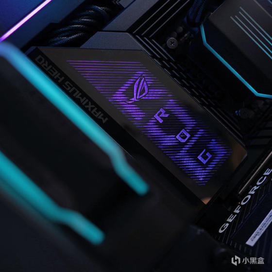 选用主板华硕 ROG MAXIMUS Z790 HERO,纯血 ROG 风格设计的主板,定位于高端发烧玩家,有着更好的规格用料及拓展功能,以及酷炫的 RGB 灯光效果。