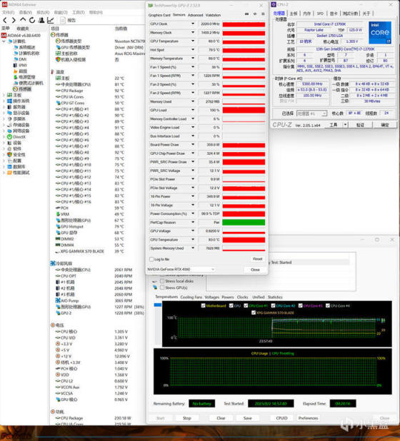 双烤测试,同样也是 20 分钟左右,CPU P-CORE 温度最大值 93°C,E-CORE 温度最大值 83°C,显示功耗 230W 左右,显卡核心温度 68°C(结温 79.5°C),功耗 360W 左右。那么以上就是这台追风者 N7V 大号海景房机箱装机秀的全部内容了,如上仅供参考,所述仅代表个人观点,谢谢您的浏览,欢迎大家留言交流!