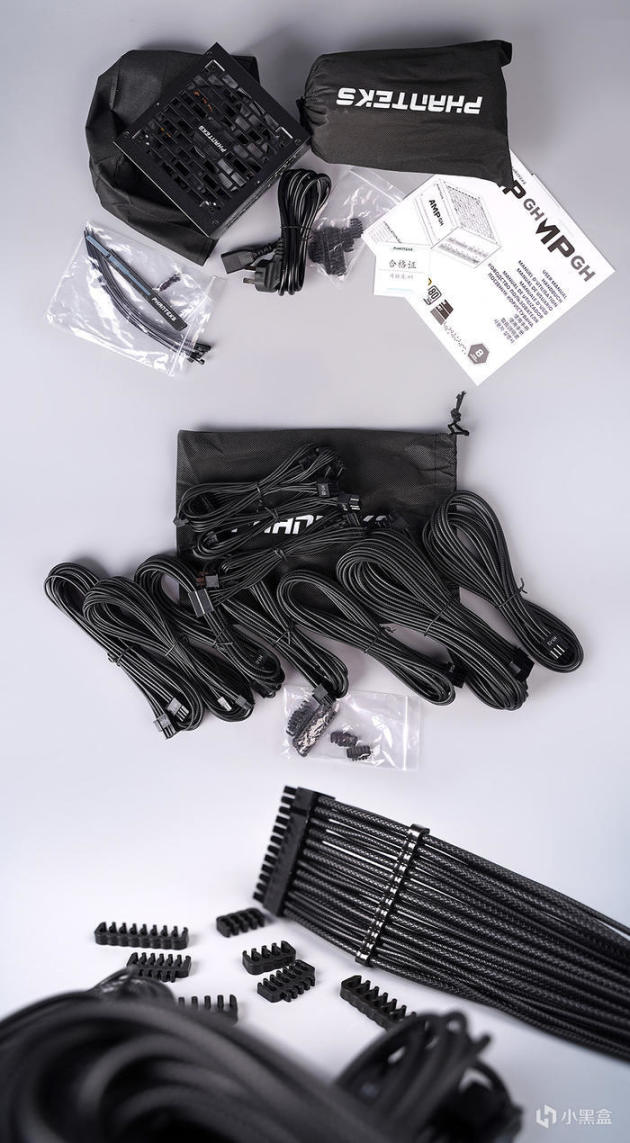 包装里头附件给到有扎带、安装螺丝、魔术贴、电饭锅线、理线梳、使用说明书、模组线及电源本体带有环保袋包裹。模组线采用黑色压纹包网,质感相当的不错,材质相比普通模组线也来得更软一些,更好的走线,更加的美观,附带理线梳管理线材,基本可以省去后做定制线的钱了。