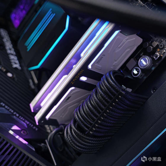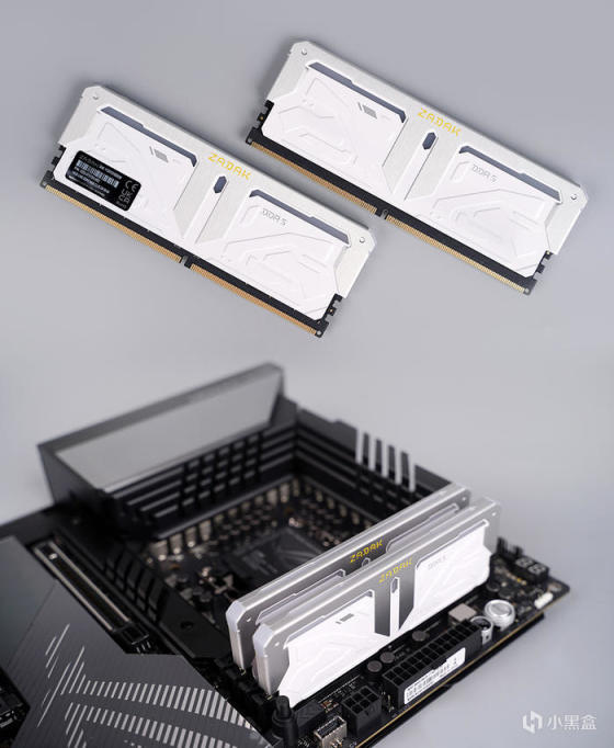 选用内存 ZADAK 银白灯条 DDR5 6400Hz 16GB×2 套装,虽为主打白色,不过这机甲造型,搭配这套主机感觉也还行,灯光具备有柔光罩,采用专利的五段式超广角灯效,借由材质交错的设计,可呈现出宝石形状的镂空导光效果,支持各大主板厂商的 ARGB 灯光同步。