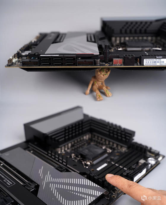 再就是 ROG HYPER M.2 扩展卡,外观设计与主板保持一致,整个的散热模块非常硕大厚实,里头给到有两个 M.2 卡槽,对应不同的卡槽,同时支持 PCIe 4.0 SSD 及未来的 PCIe 5.0 SSD。