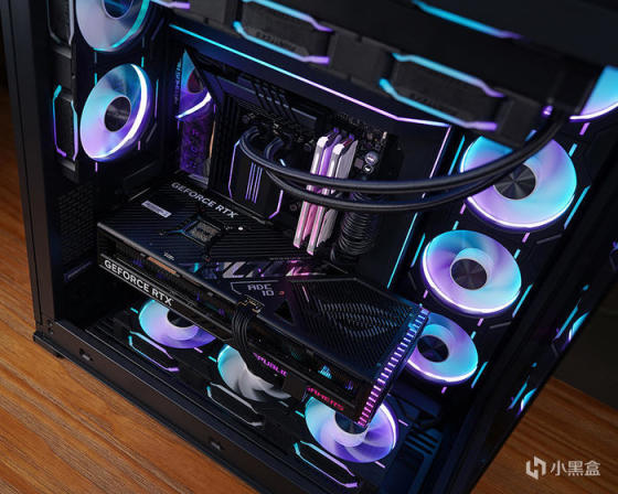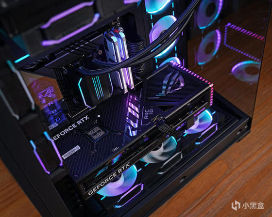 选用显卡华硕 ROG STRIX RTX 4080 O16G,性能足够满足使用需求,采用与旗舰猛禽 RTX 4090 相同的外观设计,相同的散热规格,整体又大又长又粗,外观方方正正,表面做足了 ROG 的各种元素,信仰满满!