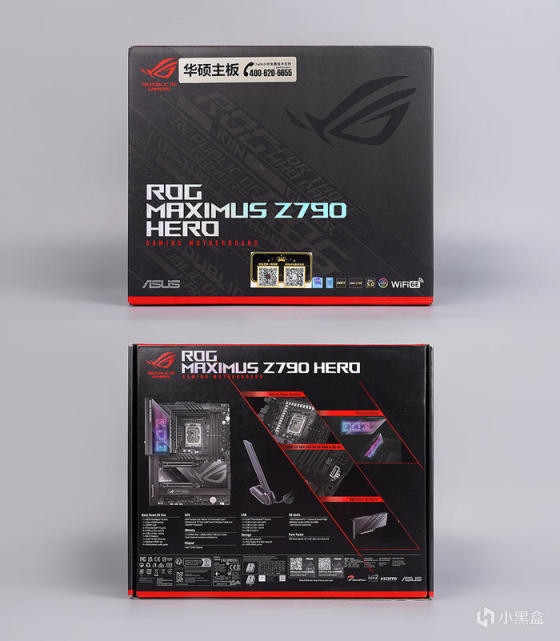 华硕 ASUS ROG MAXIMUS Z790 HERO 主板,MAXIMUS 纯血版 ROG,包装设计风格偏向于简约低调上档次那种。