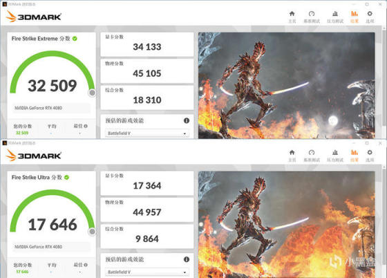 华硕 ROG STRIX RTX 4080 O16G,3DMARK 各种模式下的得分如上。