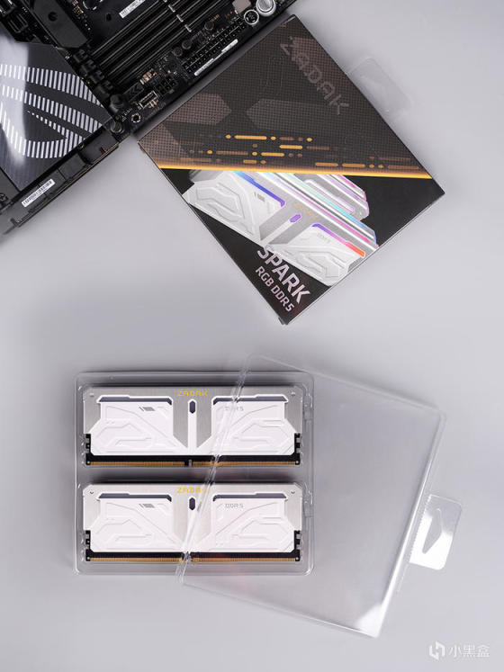 宇瞻 ZADAK 银白灯条 DDR5 6400Hz 16GB×2 套装,包装印刷有内存本体展示,标识型号烫银处理,里头内存采用透明塑料盒包裹保护。