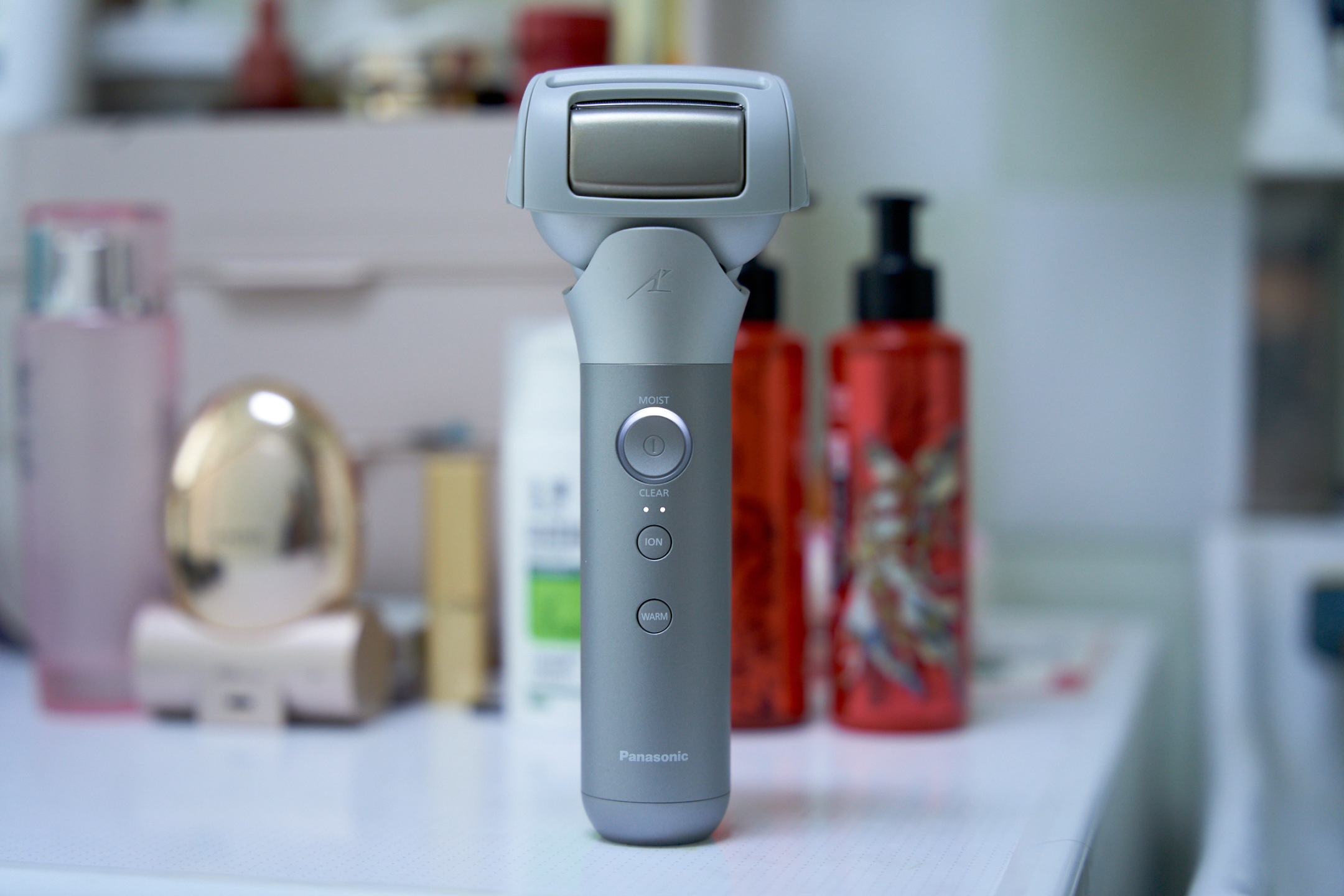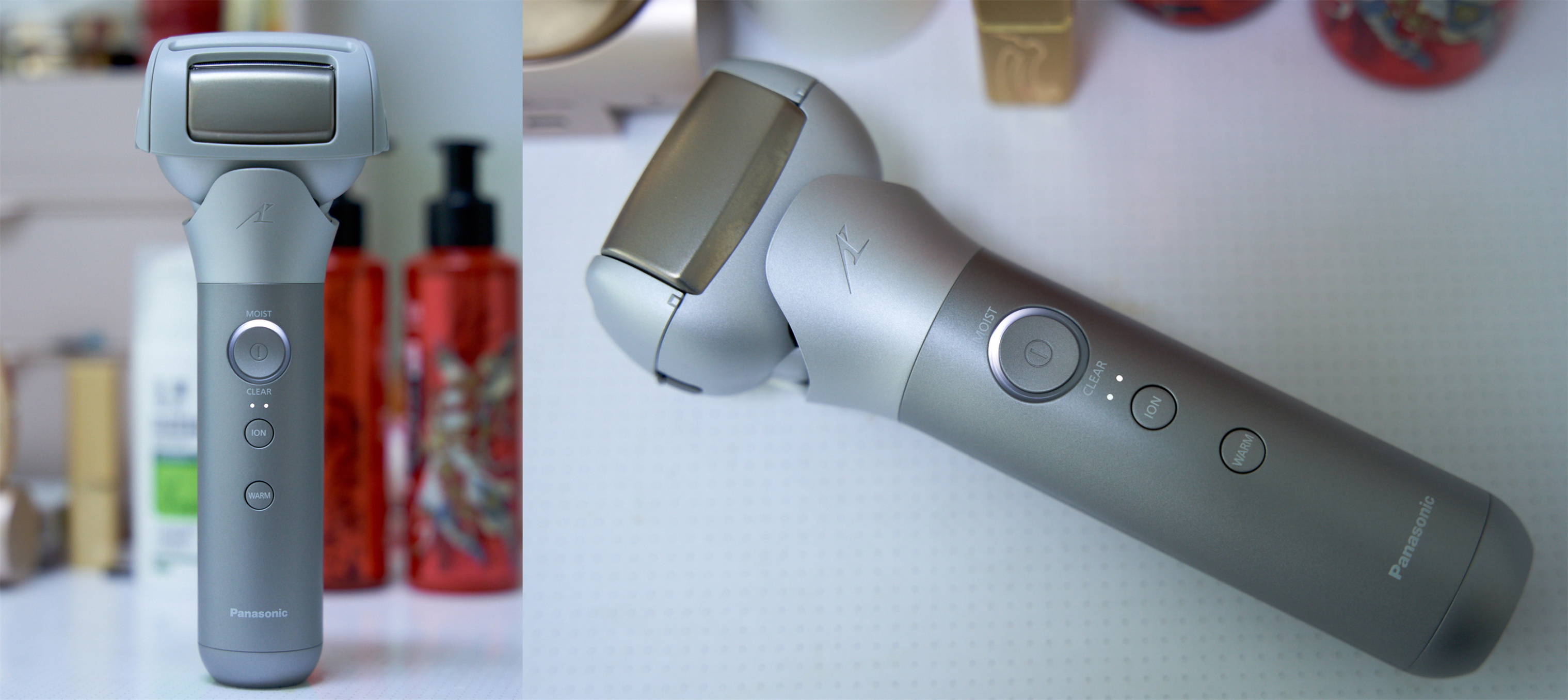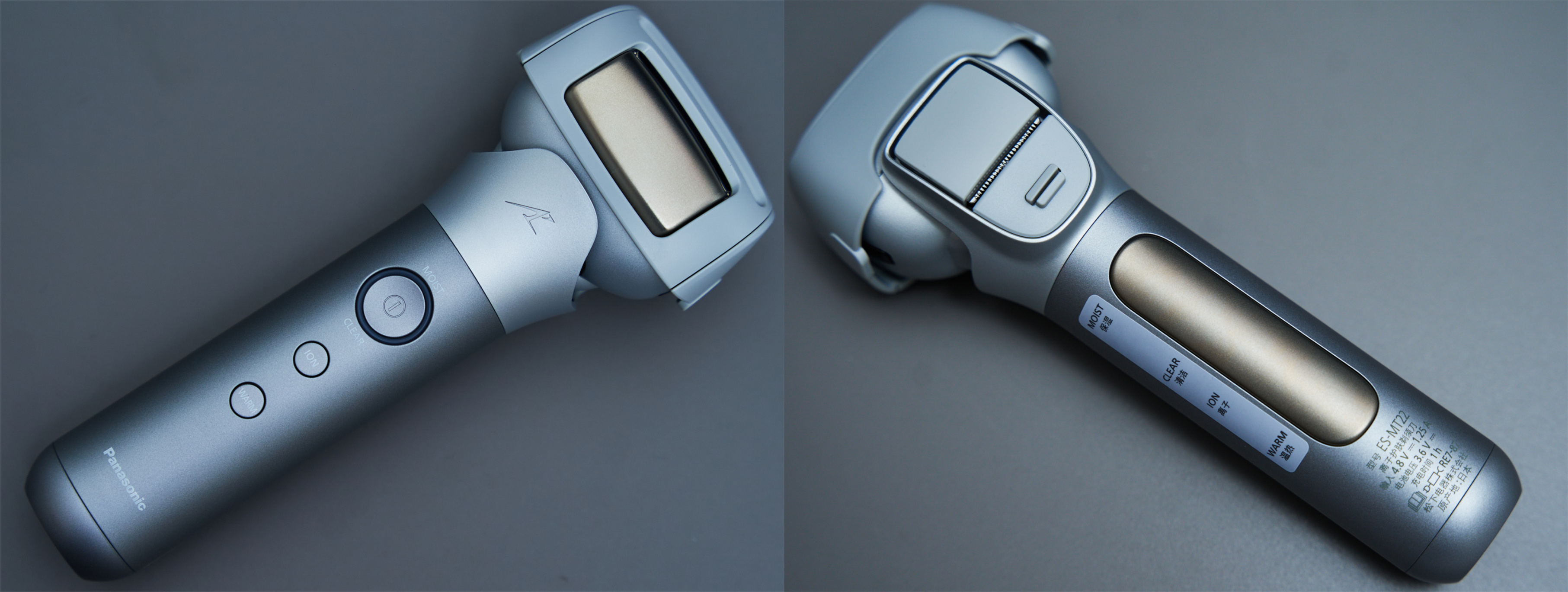 前面说到松下MT22刀头处的钛金面板在这里就要起作用啦。按动机身上“ION”按钮,机身“MOIST”状态灯亮起,提示进入离子保湿模式。