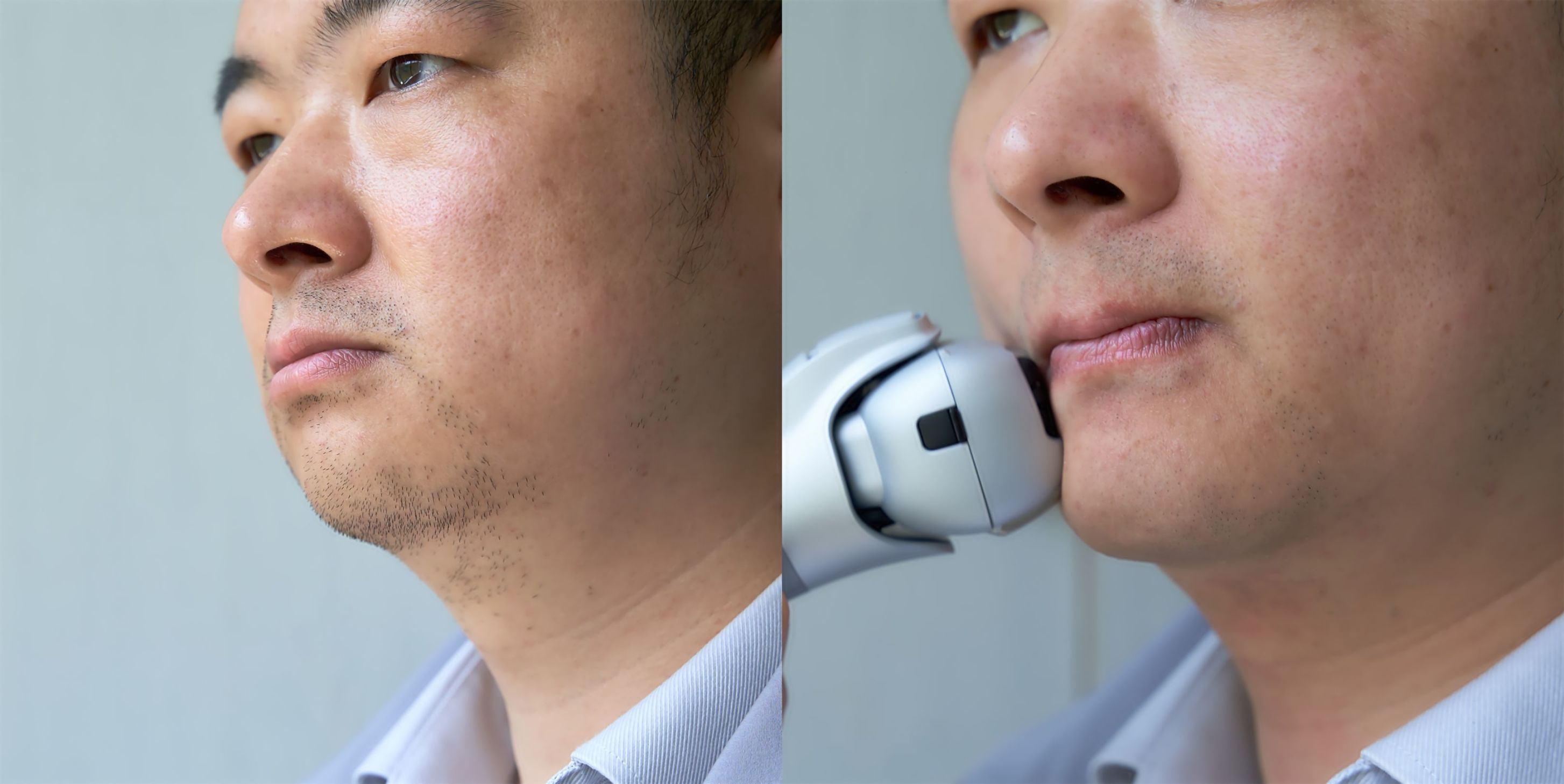 电动剃须刀主打就是一个快,用松下MT22干剃基本上一推即净。MT22自带剃须智能感应功能,每一次剃须动作电机都能够根据胡须疏密自动调节剃须力度,配合浮动贴面的刀头、刀网,三天左右的新生胡茬两三下就剃干净。
