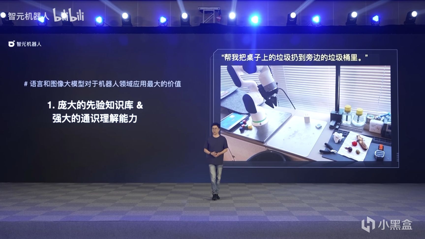 智元稚暉君認爲,結合機器人和大型語言和圖像模型是機器人領域應用最有價值的方向,首先是先驗知識庫和通識理解能力,這意味着機器人在執行任務時,不再需要顯式告知每個對象的定義和屬性,而是通過預訓練的模型來獲取相關知識。