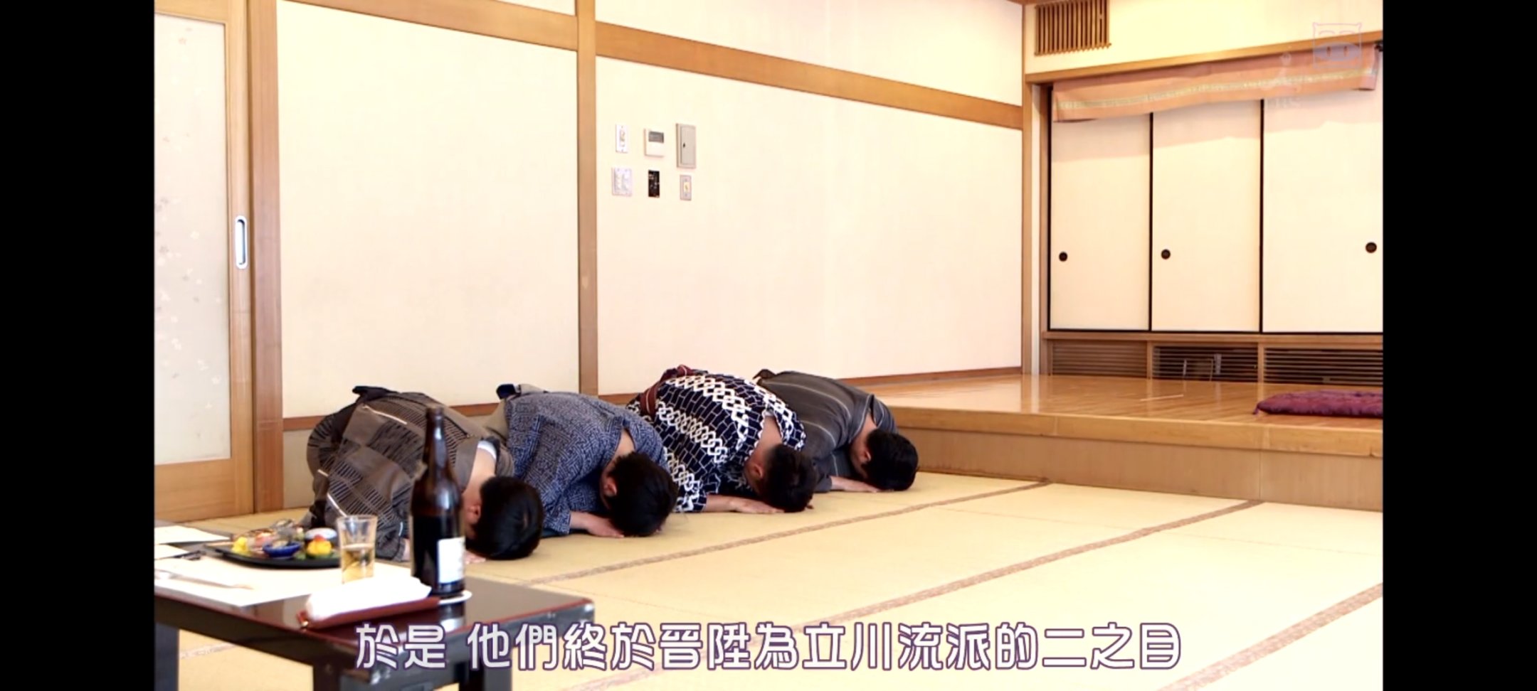 但尽管如此,师傅还是为四人召开了盛大规格的升级会,师傅在落语界是一个富有盛名的人,所以当天,日本许多有头有脸的大人物都来观赏所谓的立川流二之目。