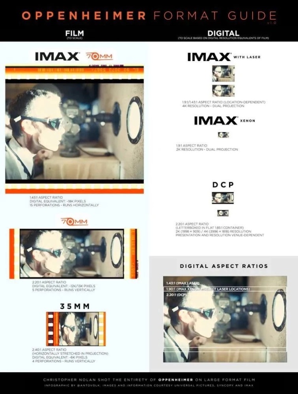IMAX是否有特殊画幅:有,70毫米胶片版&一代激光IMAX的部分场景画幅打开至1.43:1,其它IMAX的部分场景画幅打开至1.9:1(各版本效果如下图所示);