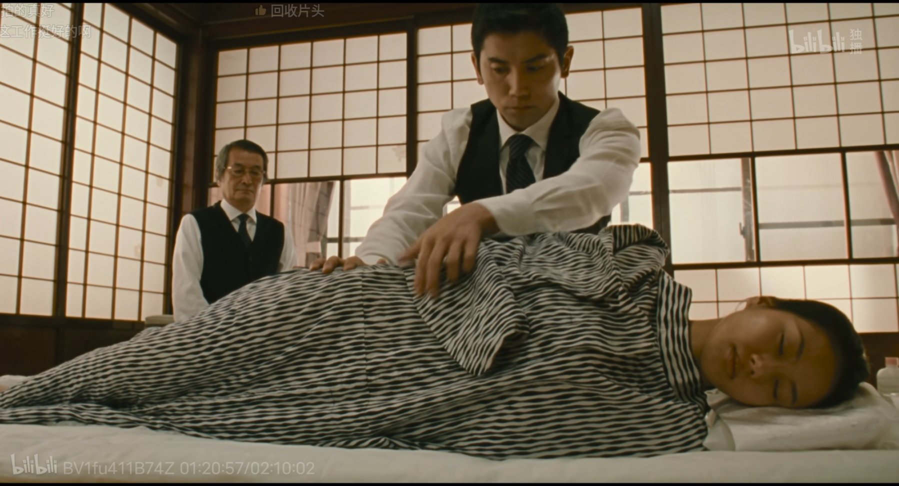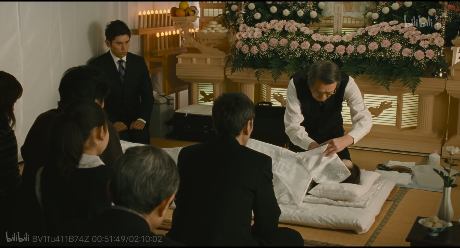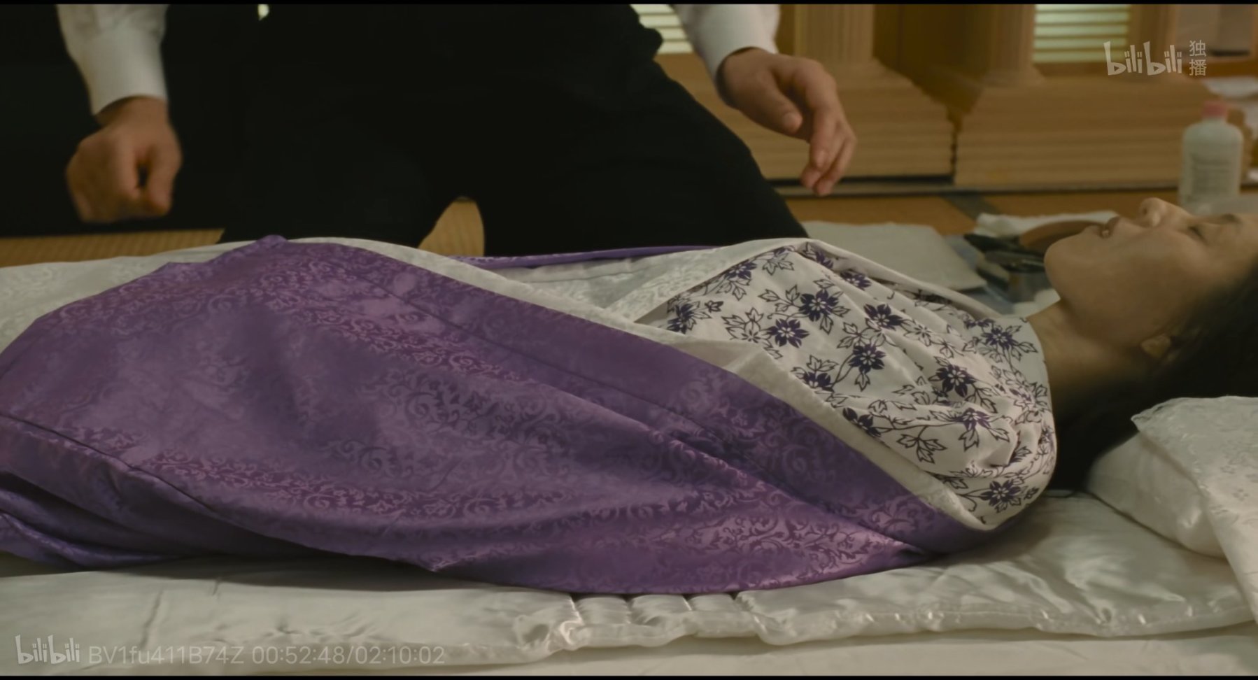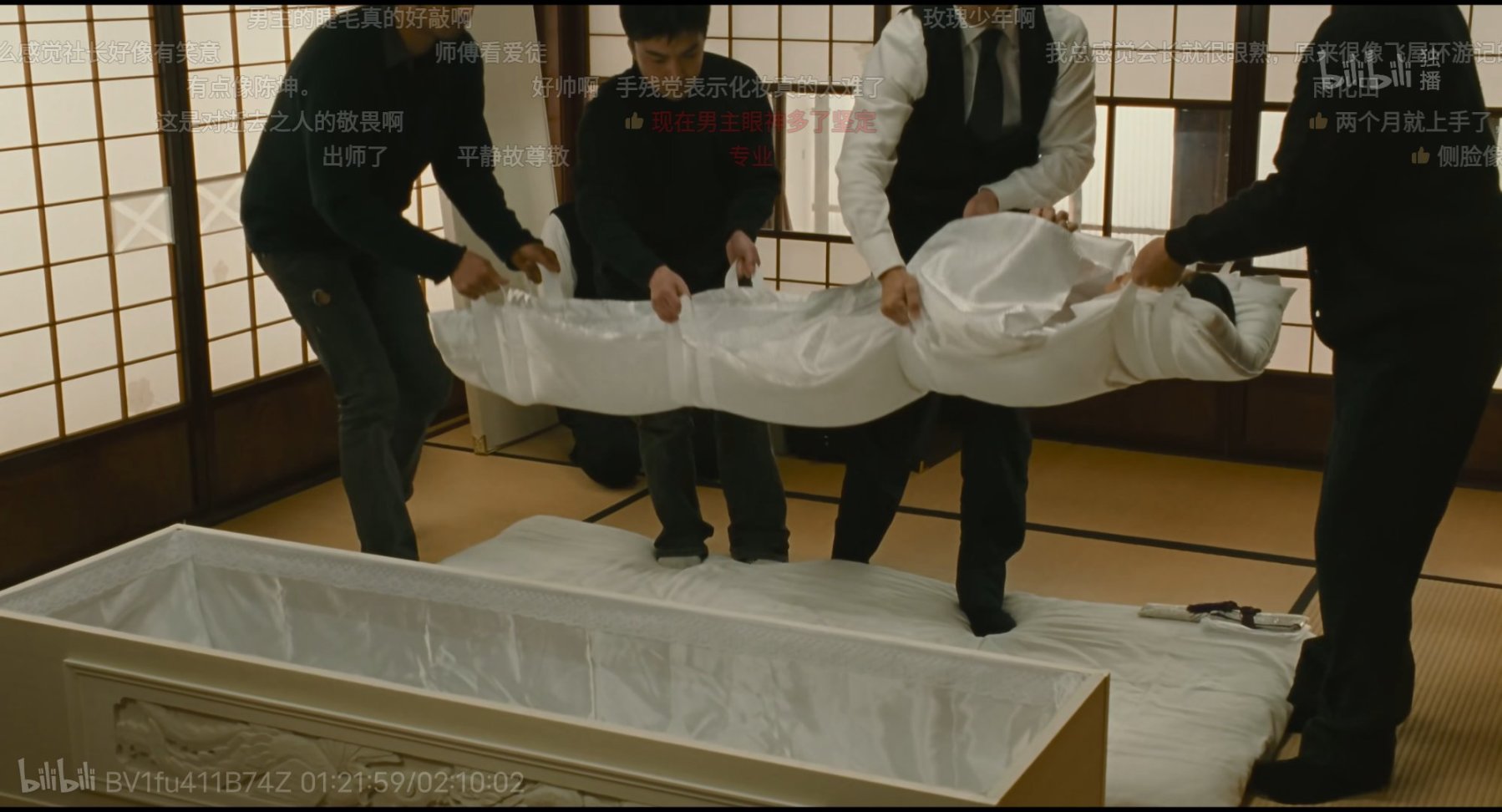 后面的剧情就是给人称述纳棺仪式了,不过小插曲就是迟到了,这部剧表达的还不算明显,亲人的离别会使人狂躁。社长给小林展示了什么叫端庄正常的纳棺仪式。