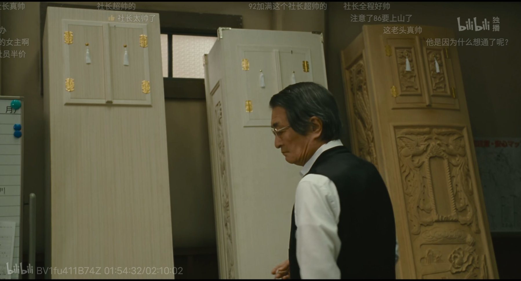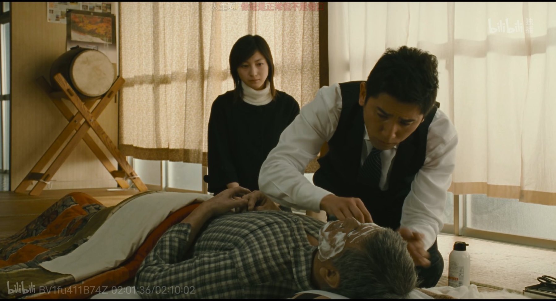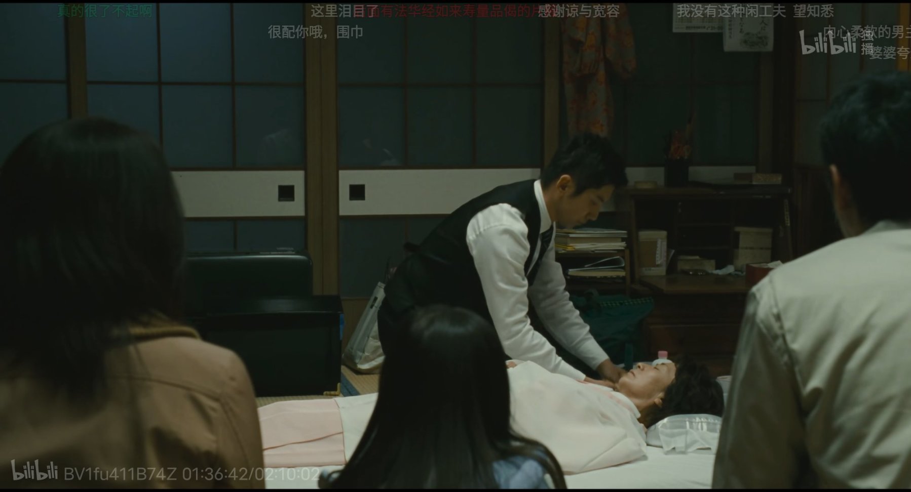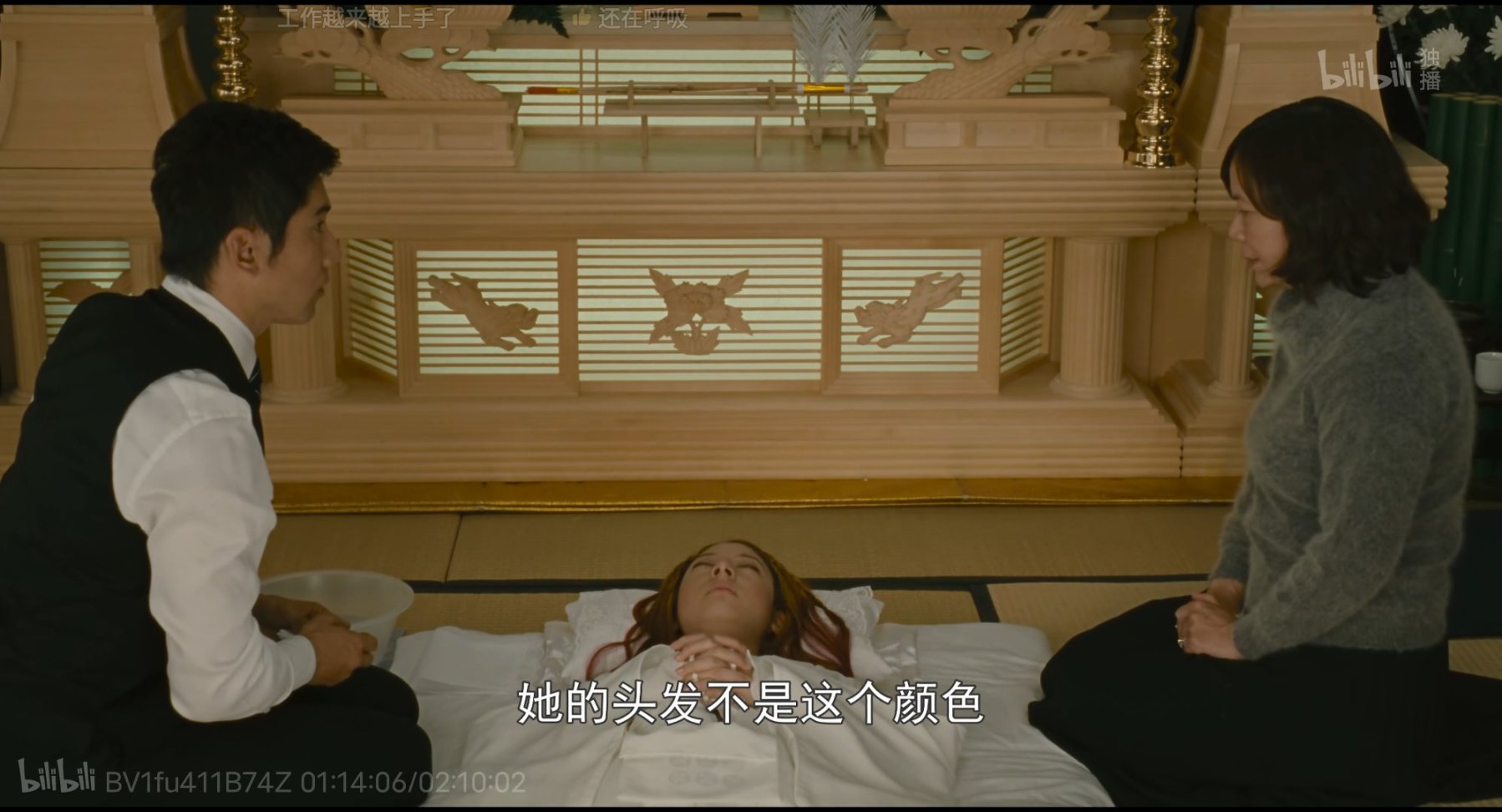 后面的剧情就是给人称述纳棺仪式了,不过小插曲就是迟到了,这部剧表达的还不算明显,亲人的离别会使人狂躁。社长给小林展示了什么叫端庄正常的纳棺仪式。