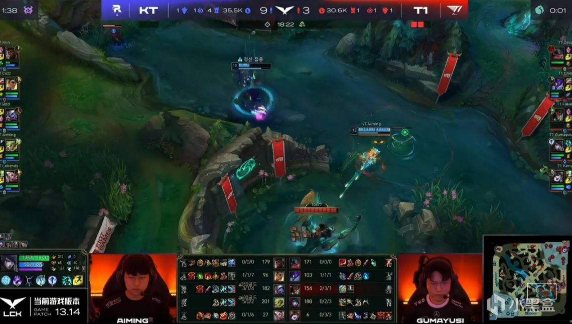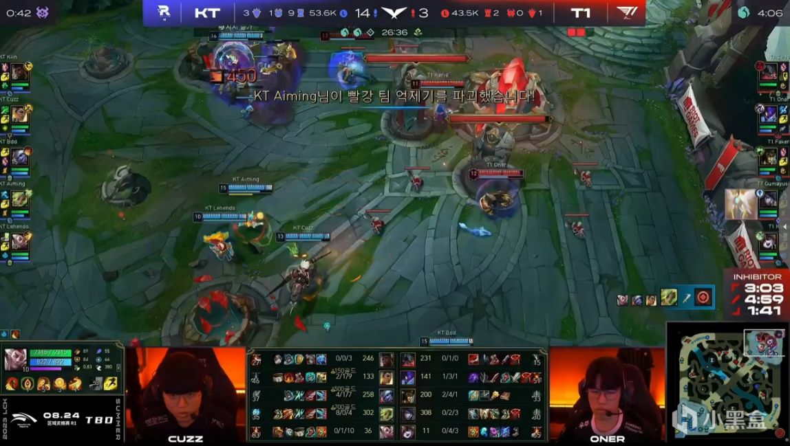 LCK季後賽,KT大戰T1!開局,野區團戰,Aiming澤麗收割,KT打出三換四!T1下路爆炸,Aiming澤麗超神!28分鐘,KT推掉三路高地,輕鬆碾壓結束比賽!
