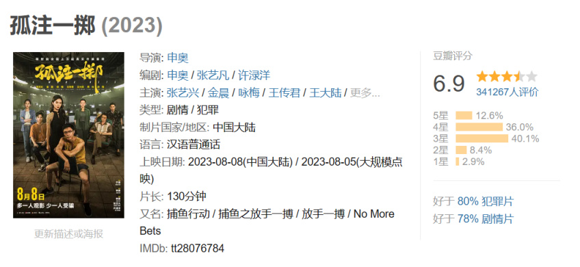 上映12天,電影《孤注一擲》票房突破25億,豆瓣評分6.9