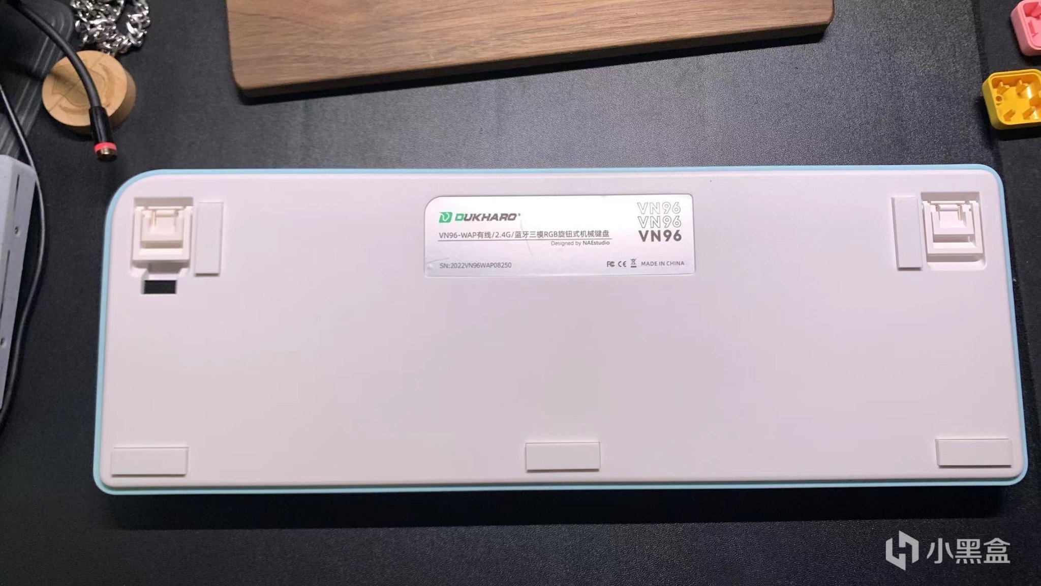 相对于vn66来说,vn96在键盘背面右侧脚撑下方做了一个2.4g收纳仓的设计,这个我个人感觉不错,因为啥啊,他保持了键盘背面面板的一致性,并不像是别的键盘一样,在后面掏一个洞,影响美观。