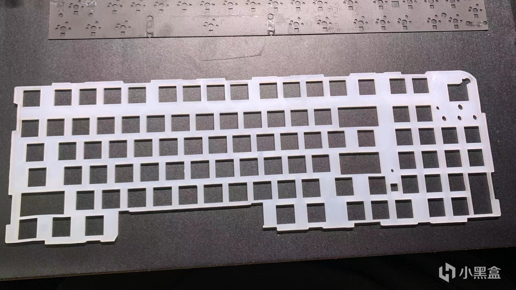 底棉也是硅胶材质的,可以看出来,这把键盘底棉也是进行了重新开模的设计,并且加上了我最不喜欢的小点点,也就是所谓的支撑柱,这个我不喜欢,一会就给他剪了!