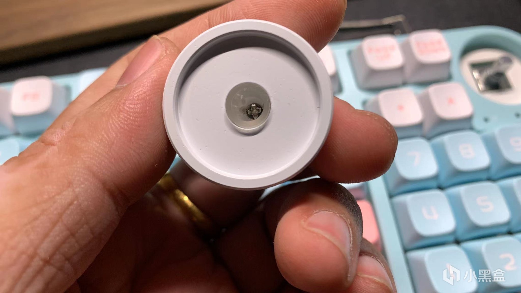 键盘右上方,因为这个巨大的旋钮,所以他把+号这些的砍成了一个1u的小按键,锁定键可以通过组合键实现。