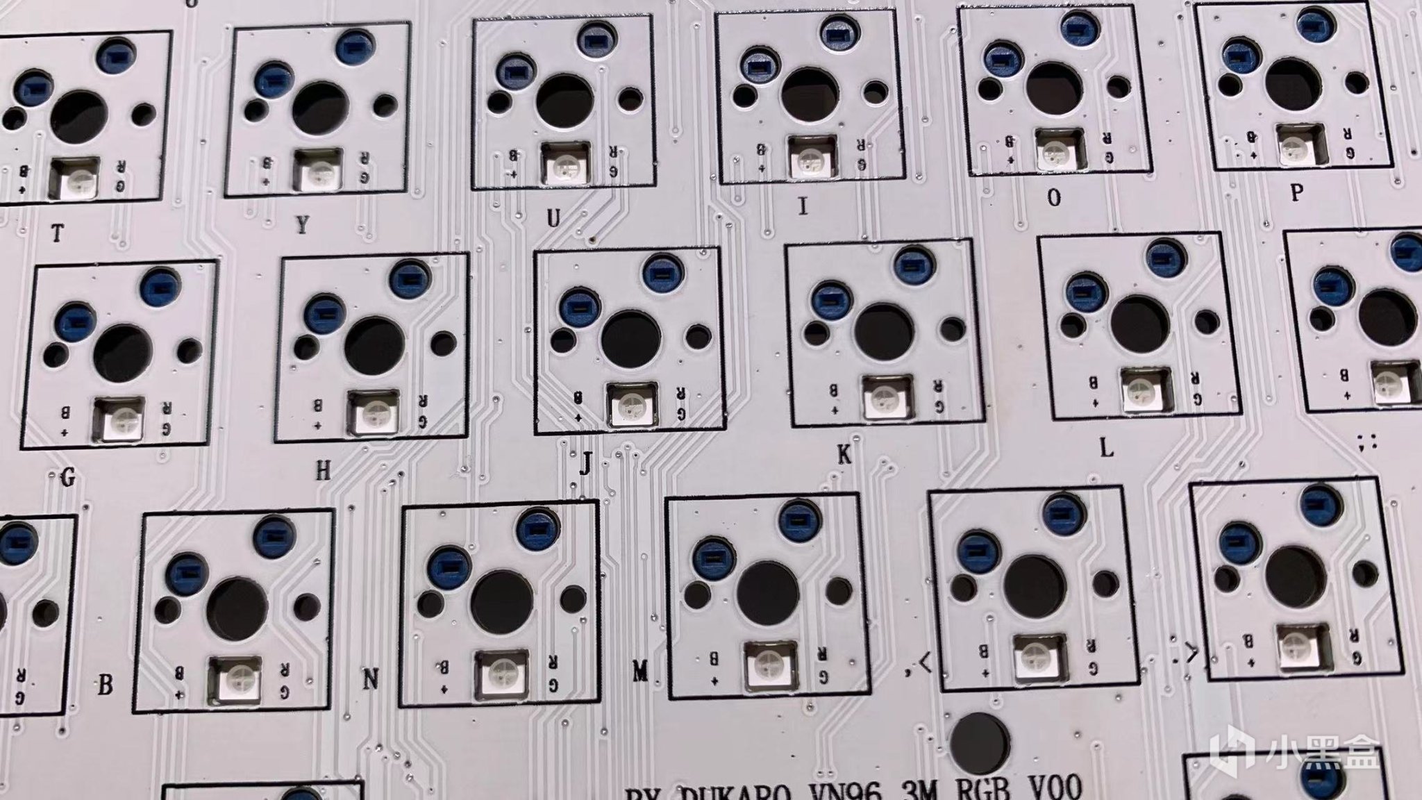pcb正面可以看见,这把键盘采用的下位灯,以及他支持五角轴和三角轴,也就是说他支持了市面上的绝大部分轴使用(部分静电容轴以及光轴除外)