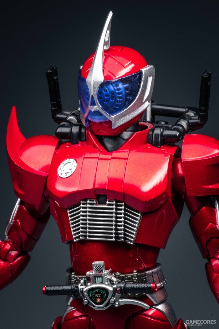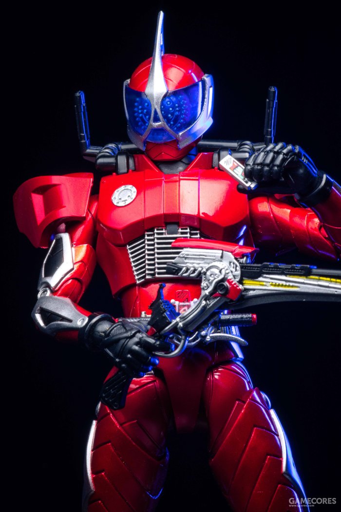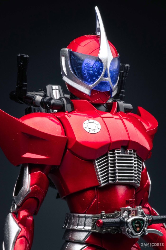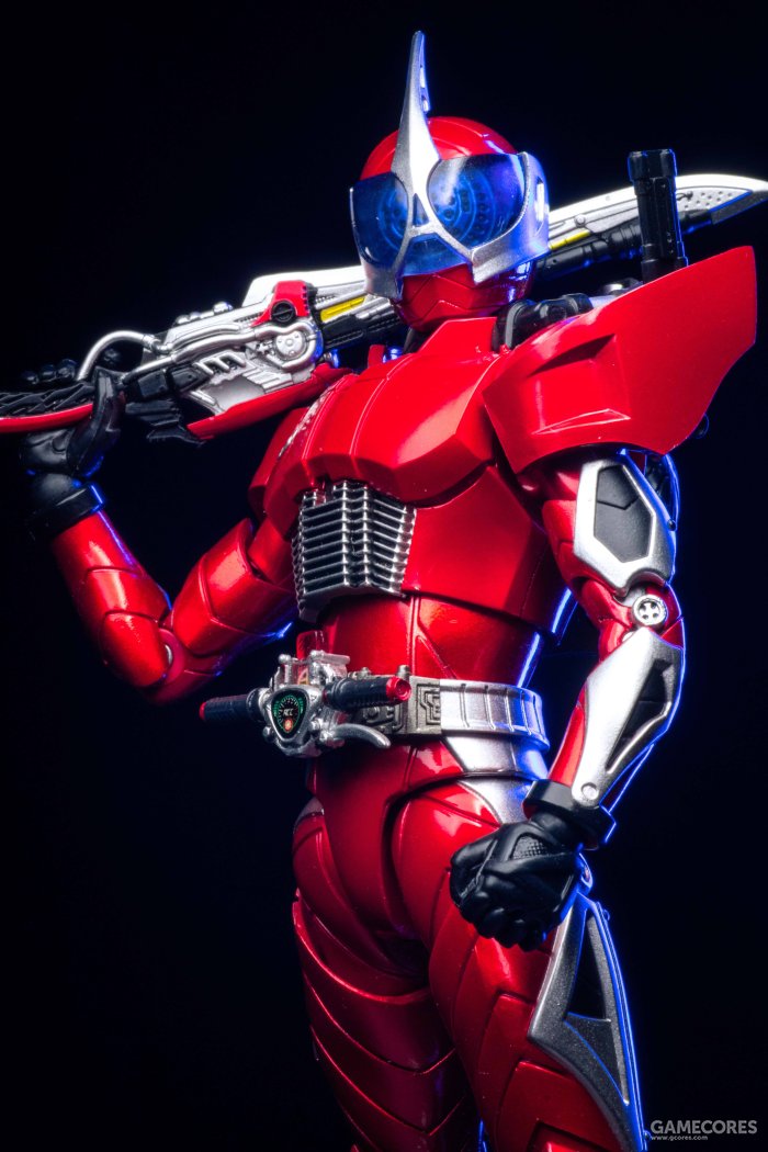 作为故事中的二骑,附属了武器引擎剑刃,造型跟后面的假面骑士OOO的常规武器有点相似?