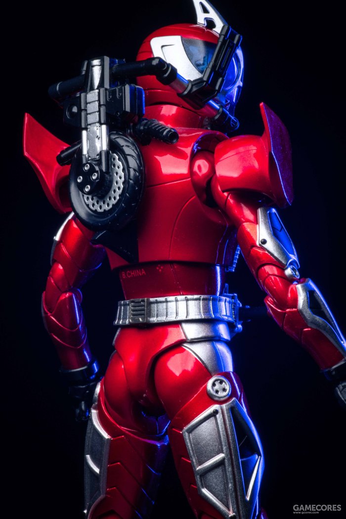 -可动干涉,全身因为要配合可变摩托车的角色设定,哪怕人形状态已经大幅度微缩化摩托车身上的元素,但已经在背部、腰部、小腿部等地方对可动范围造成了明显的干涉。不过反过来来说,这也是可变角色或者机体常见的折中妥协,大可接受。
