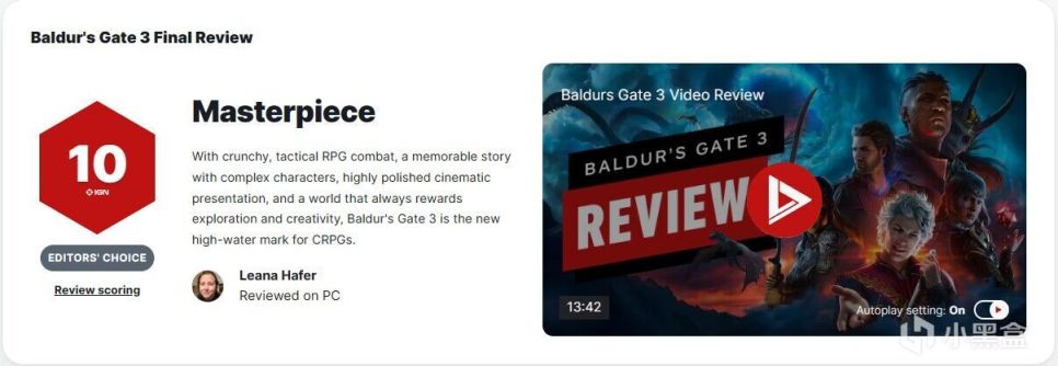 今日 IGN 公佈了《博德之門 3》的完整評測,IGN評之爲滿分(10分)作品,並獲得了“編輯之選”。