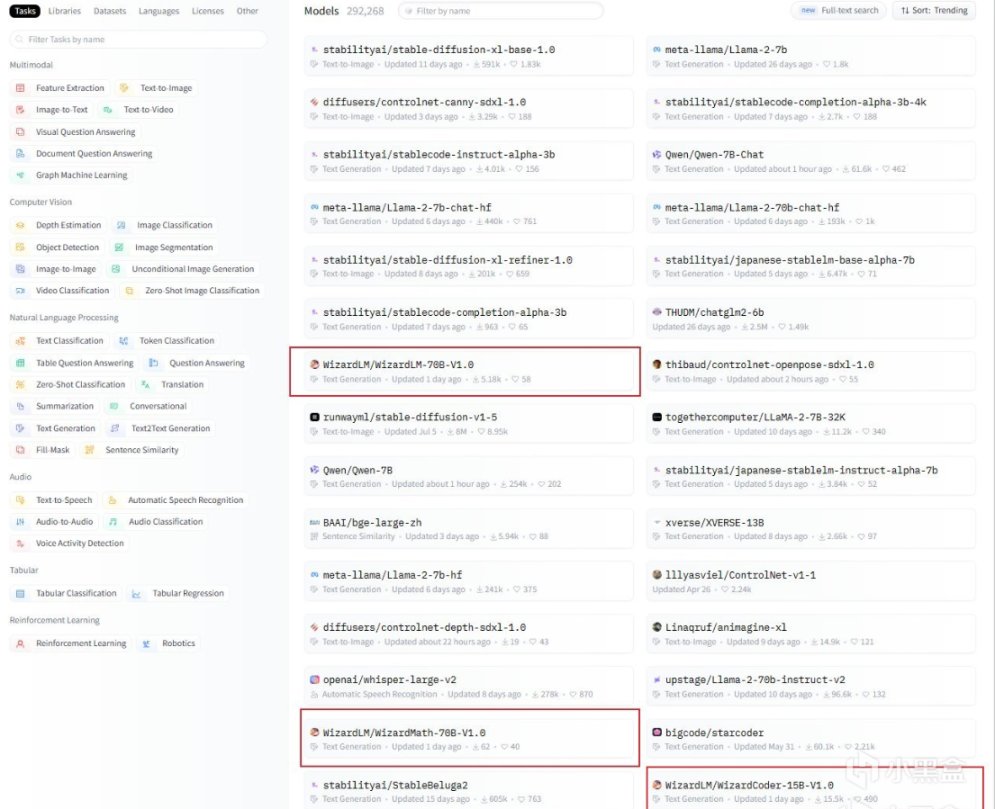 在最近幾天中,WizardMath在HuggingFace排行榜上一躍衝進前十,其中WizardMath-70B和WizardCoder-15B兩個參數版本的大模型,與Stable Diffusion和Llama-2等熱門模型並列在首頁!