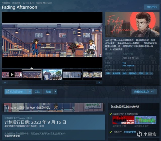横版像素《日薄西山》预购开启,大佬重出江湖之路!原《石河伦吾的朋友们》开发商制作的这款新游,依旧保持一贯的像素画风,玩法上从宣传片中可以看到有了更多的行为动作。战斗部分尤为明显,体验了江湖大佬的出狱新生活,喜欢这类剧情推动的游戏玩家朋友们可以丢入愿望单。游戏将于今年9月15日正式上线,敬请期待