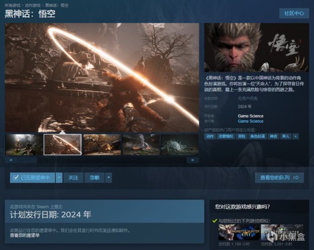 《黑神话:悟空》线下试玩直播开启,Steam页面现已上线