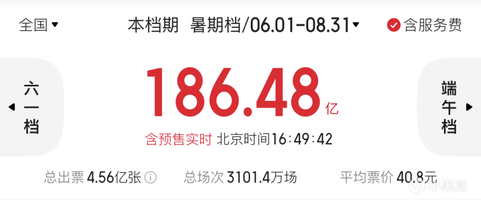 截至8月20日暑期档票房已经来到了惊人地186.6亿,保守估计突破190亿没有什么问题,并且有望突破200亿大关。