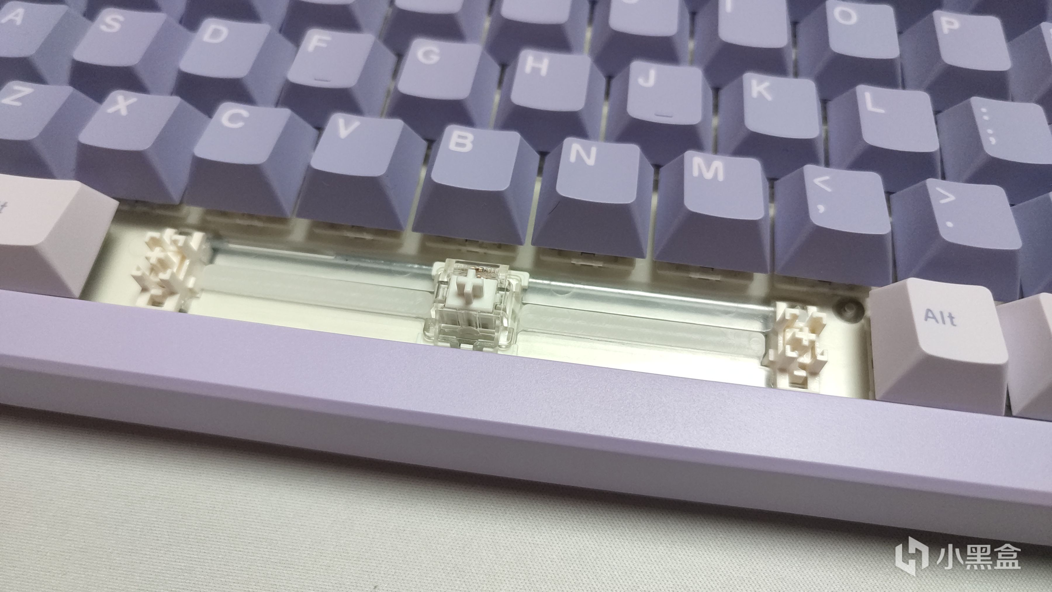 軸體採用PC高透上蓋,看着這個搭配應該還是經典的POM軸芯+PC上蓋+尼龍底殼。顏色搭配上全部採用的是白色,整體質感我感覺略顯廉價,但實際聲音表現還算可以,很難想象這個軸體是搭載在149的最低配版本。