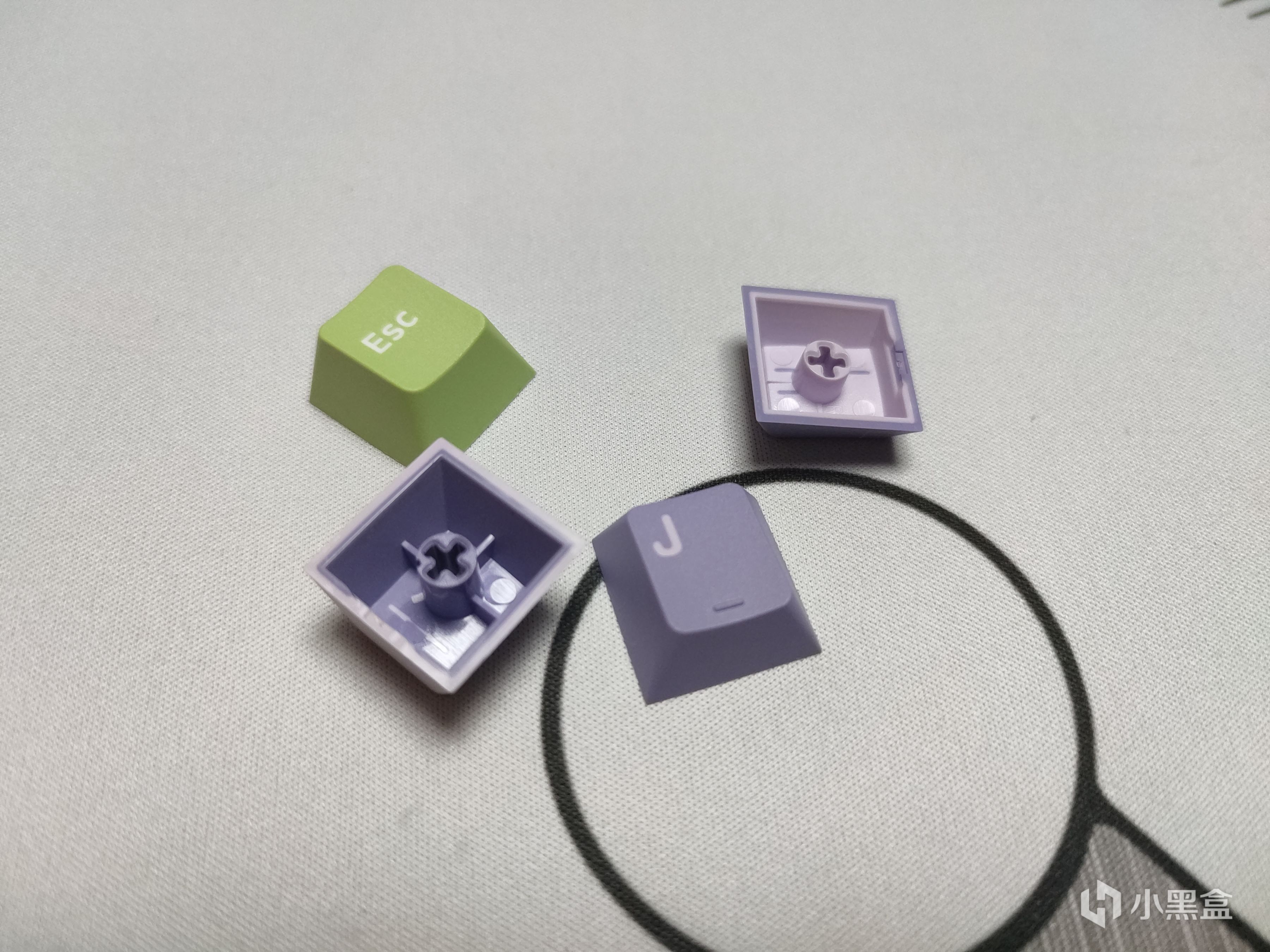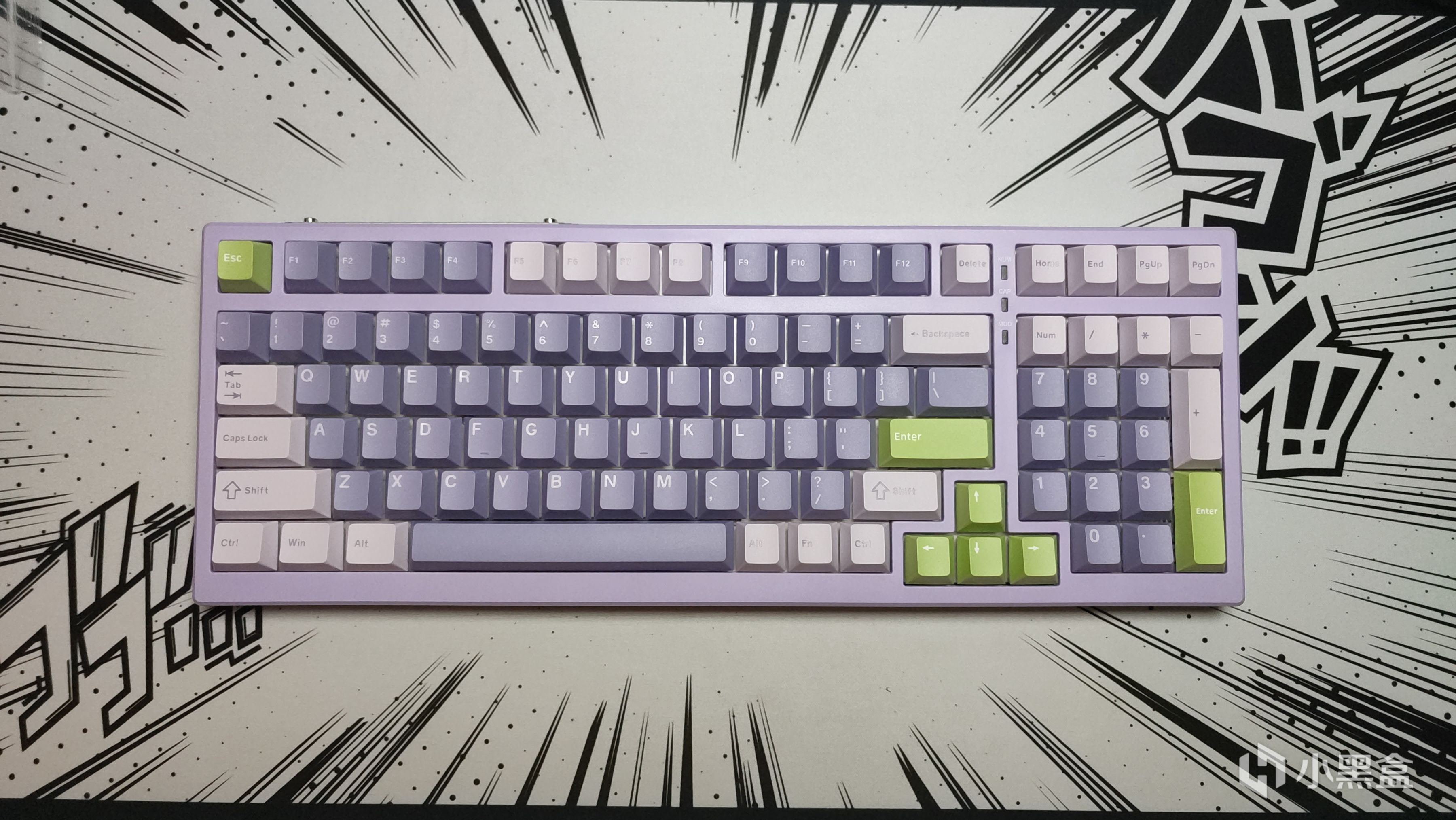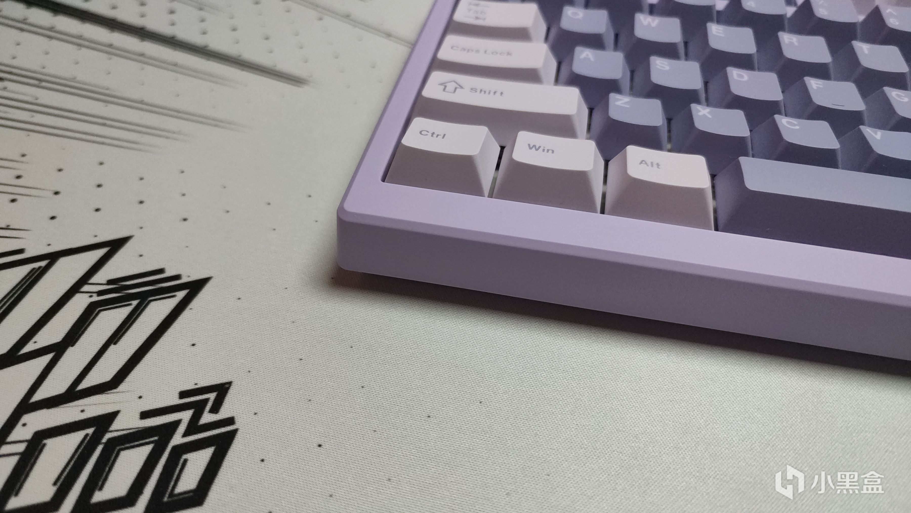 這一套鍵帽是薰衣草配色,很好的和鍵盤套件呼應,整體的顏色是紫色,但是飽和度偏低,整體的搭配還算不錯,部分鍵位用了綠色點綴,顏值挺高,小清新配色。
