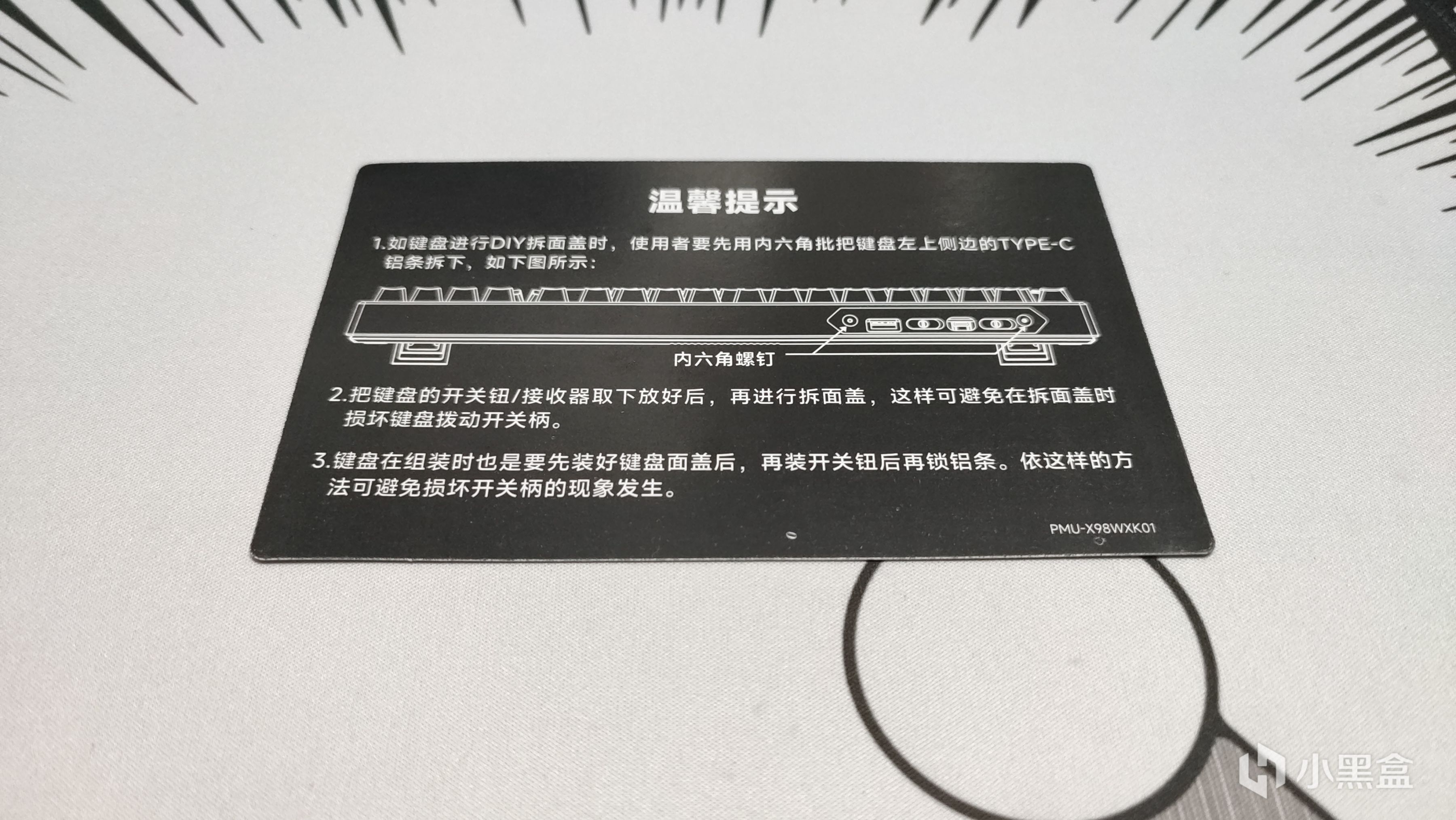 後側面的這個鋁板要提前拆掉,這一點隨鍵盤附贈的卡片上有提醒這個小細節還是不錯的。