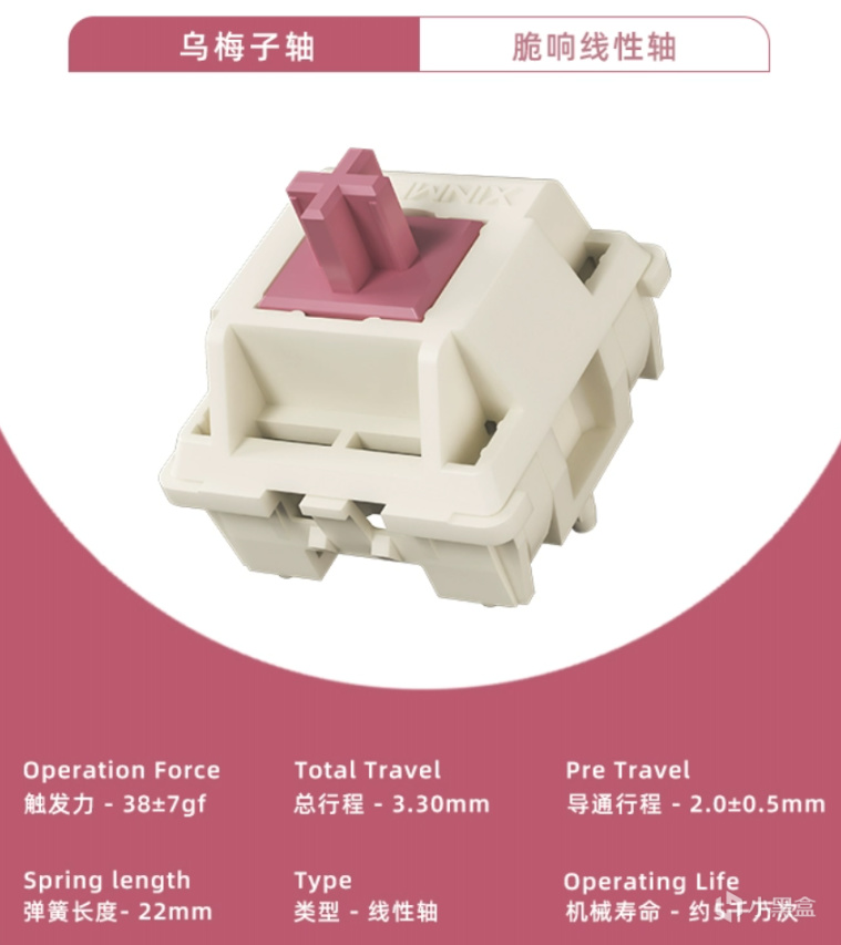 除此之外我還拿到了一罐軸體,是新盟準備搭載在其新鍵盤A66上的烏梅子軸: